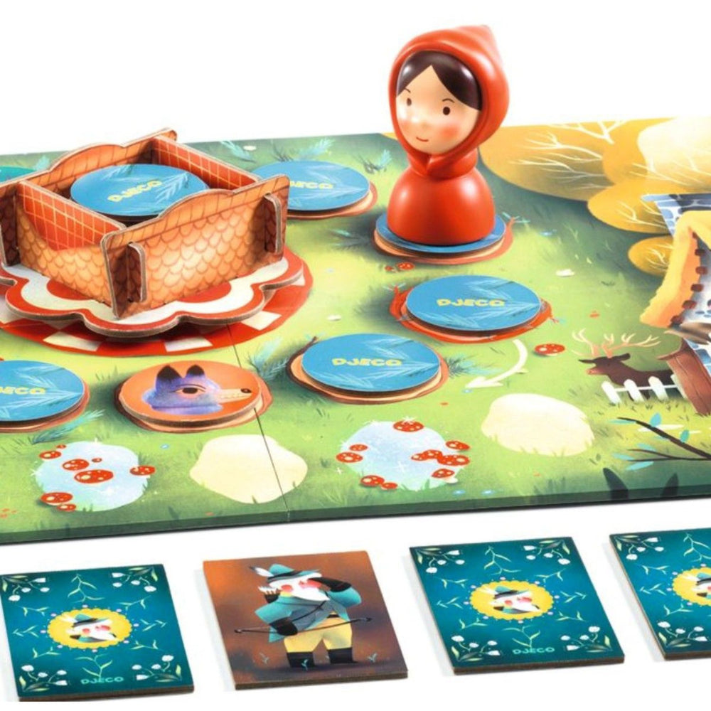 Featuring a beautifully illustrated game board, two adorable figures of Little Red Riding Hood and the wolf, a playful assortment of tiles, and easy-to-follow rules, this game promises endless excitement and learning. Its compact design ensures it's easy to store and perfect for taking on the go, offering entertainment and educational value wherever you are.