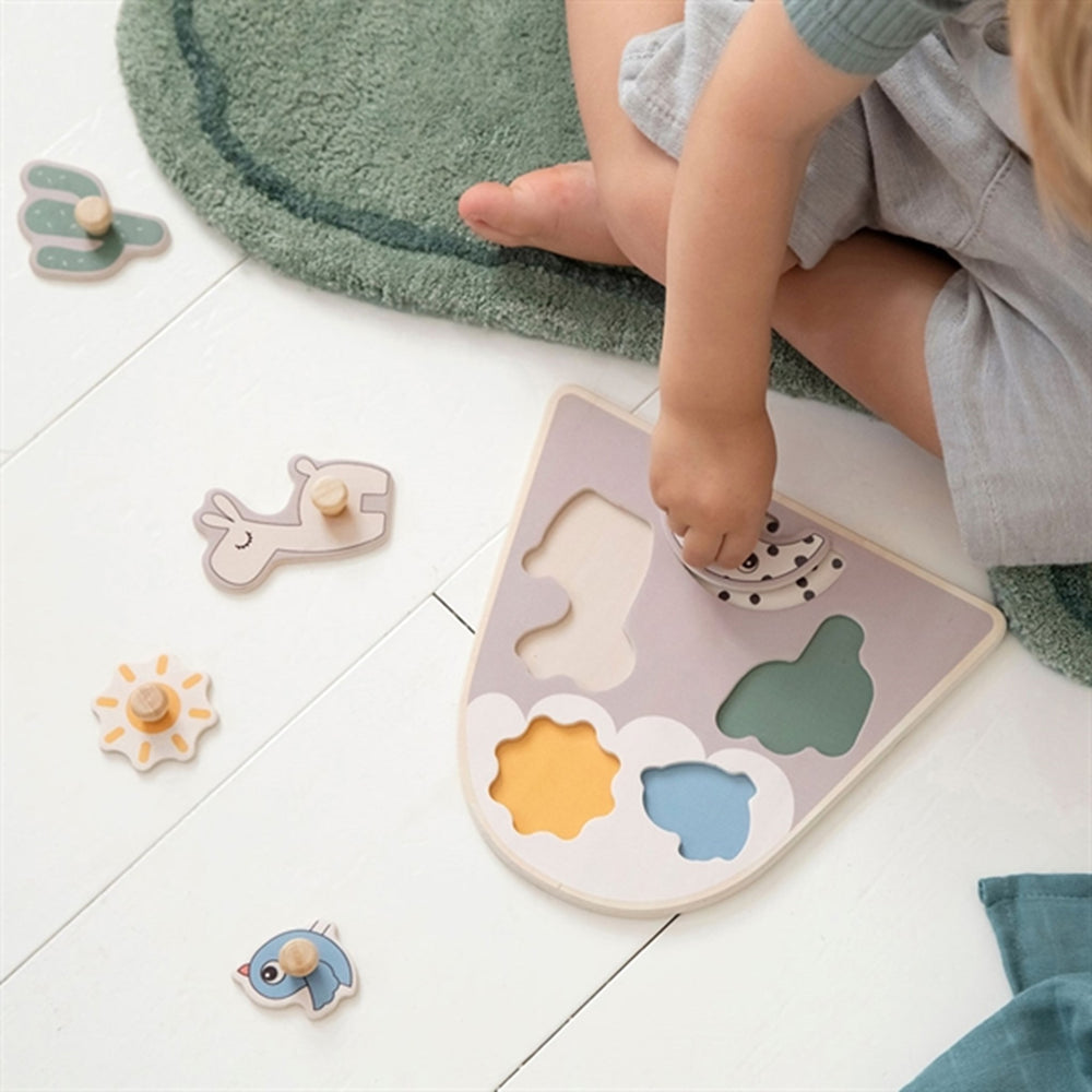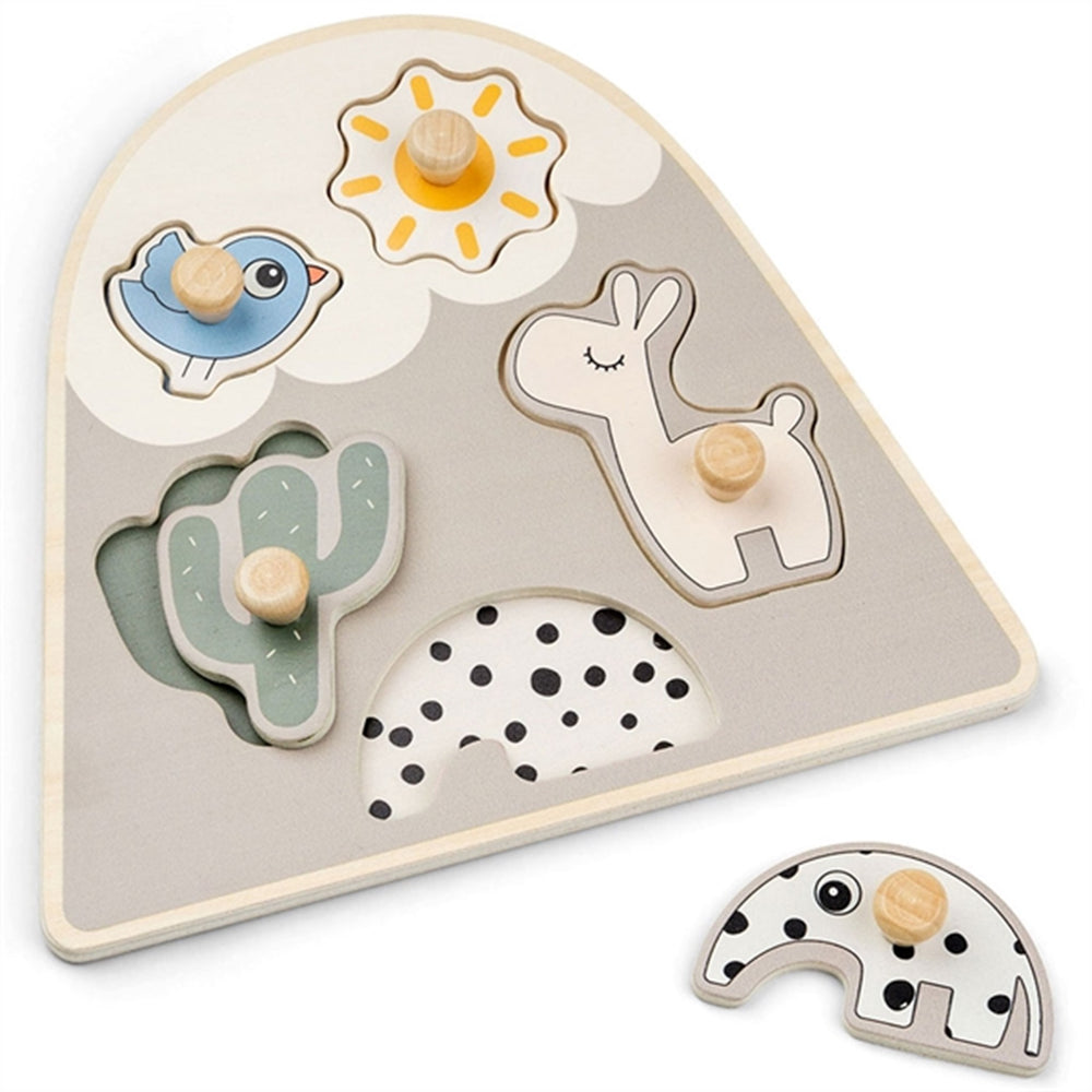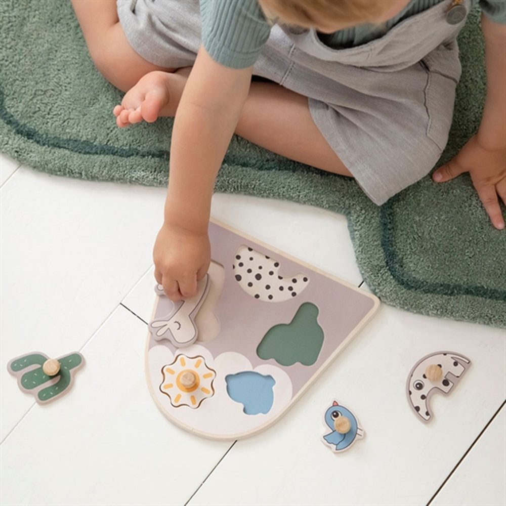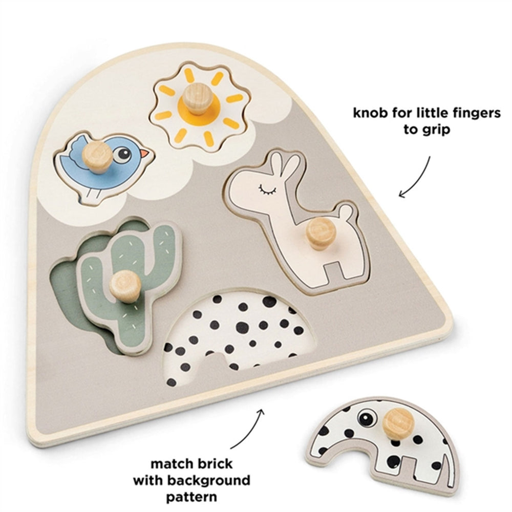 Introducing the Done by Deer Peg Puzzle Lalee Sand, a delightful choice for your little one's first puzzle adventures! Crafted from responsibly sourced wood and adorned with water-based, child-safe paints, this puzzle is as safe as it is fun. Featuring knobs perfectly sized for little fingers, it not only promotes fine motor skills but also enhances logical thinking and problem-solving through matching pieces with distinctive patterns. Its portable design and easy maintenance make it ideal for on-the-go entertainment and straightforward storage. With its charming, soft sand colors and adorable Deer friend shapes, your child will stay engaged and entertained while learning. Perfect for toddlers, this puzzle will become a cherished part of their playtime.
