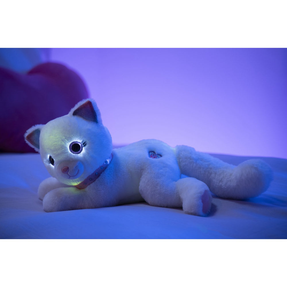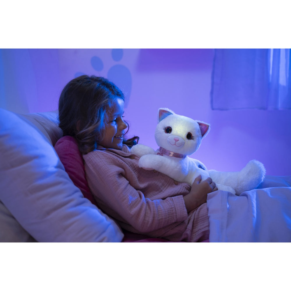 Introducing the delightful Cuty Bella Fashionista, a plush companion perfect for little ones starting from 18 months old. This cuddly cat doesn't just offer warm hugs; it's designed to captivate and educate. Bella's fur lights up in vibrant rainbow colors and she plays soothing melodies, enhancing sensory development through sight and sound. With a child-friendly brush included, children can practice their motor skills and creativity by styling her soft fur.