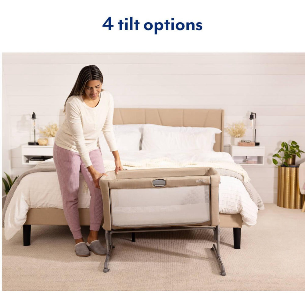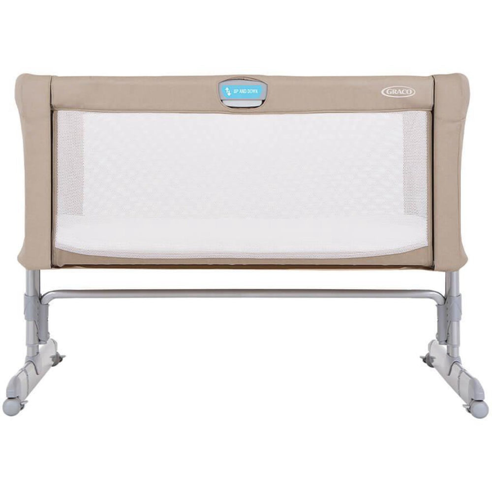 Discover the Graco Oatmeal Sweet2Sleep™ Bedside Crib, expertly designed to offer the utmost comfort and safety for your little one from birth to approximately 6 months (max. 9kg). This bedside crib boasts a user-friendly design with an easy-access side rail that adjusts with one hand and multiple height settings to align perfectly with your bed. The secure wraparound strap ensures the crib stays attached to your bed for added safety.
