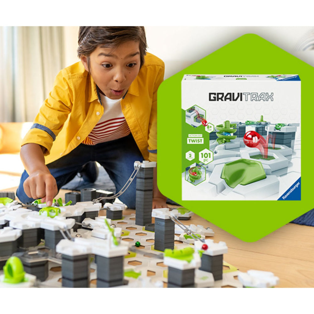 Explore the wonders of physics and unleash your child's creativity with the GraviTrax Action-Set Twist! This engaging marble run set is designed to entertain while educating, offering a hands-on experience in building and gravity. Safe and suitable for children aged 8 and up, the GraviTrax system emphasizes safety in every twist and turn.
