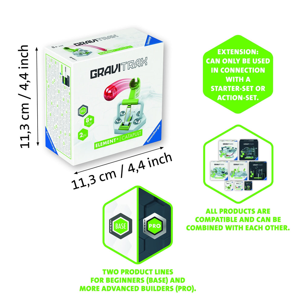 Spark your child's imagination with the GraviTrax Element Catapult! This thrilling marble run accessory allows little engineers to catapult marbles through the air, tackling height differences and various obstacles. Designed for use with the GraviTrax Starter Set, it enhances interactivity and adds an exciting challenge. Perfect for children aged 8+ years, it promises a safe, educational playtime by encouraging problem-solving skills. The package includes the action stone Catapult, 4 orbs, and 10 extra rubber rings for endless fun. Easy to set up, store, and maintain, this is an ideal addition to your child’s play area for fostering creativity and learning through play.