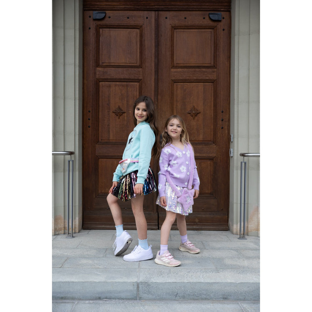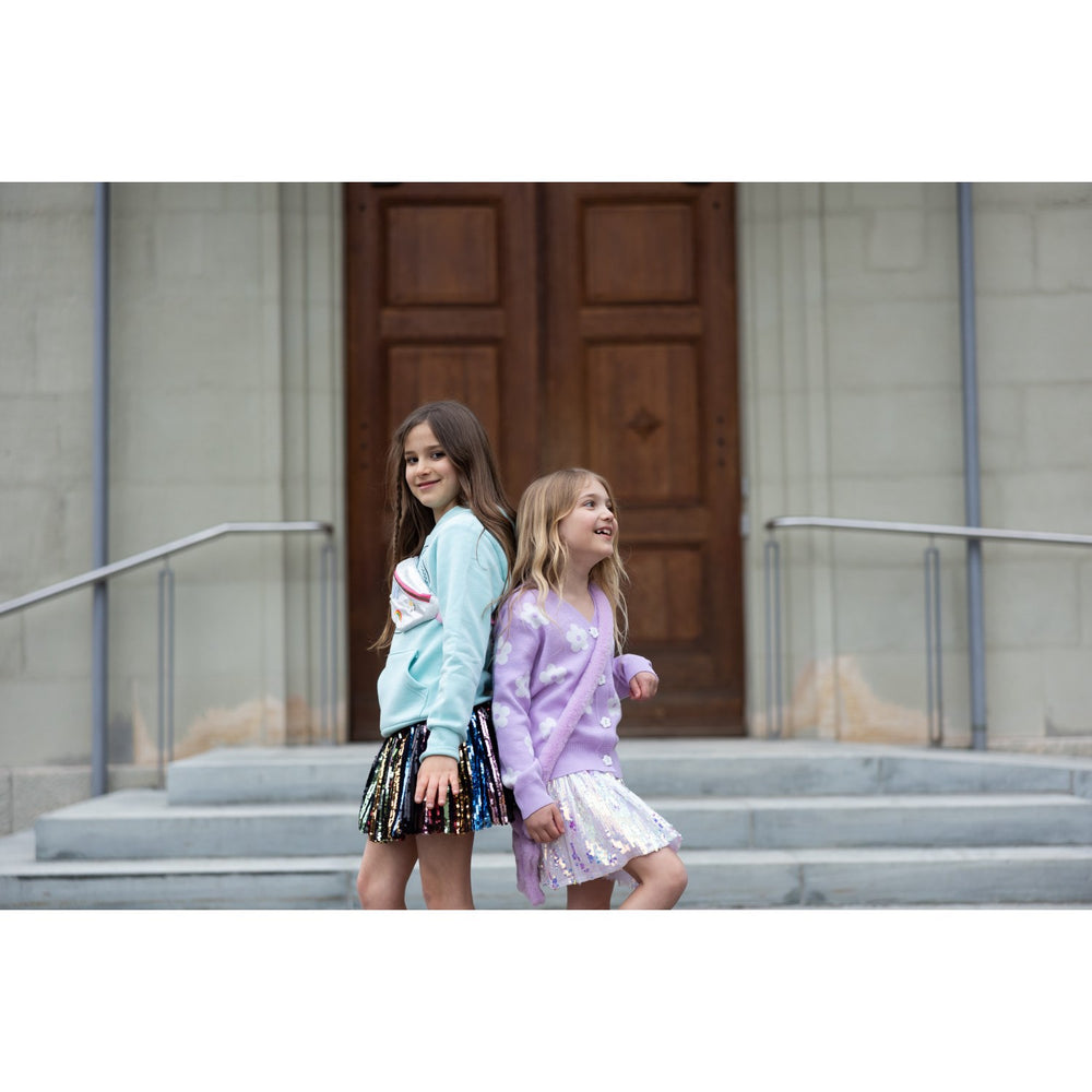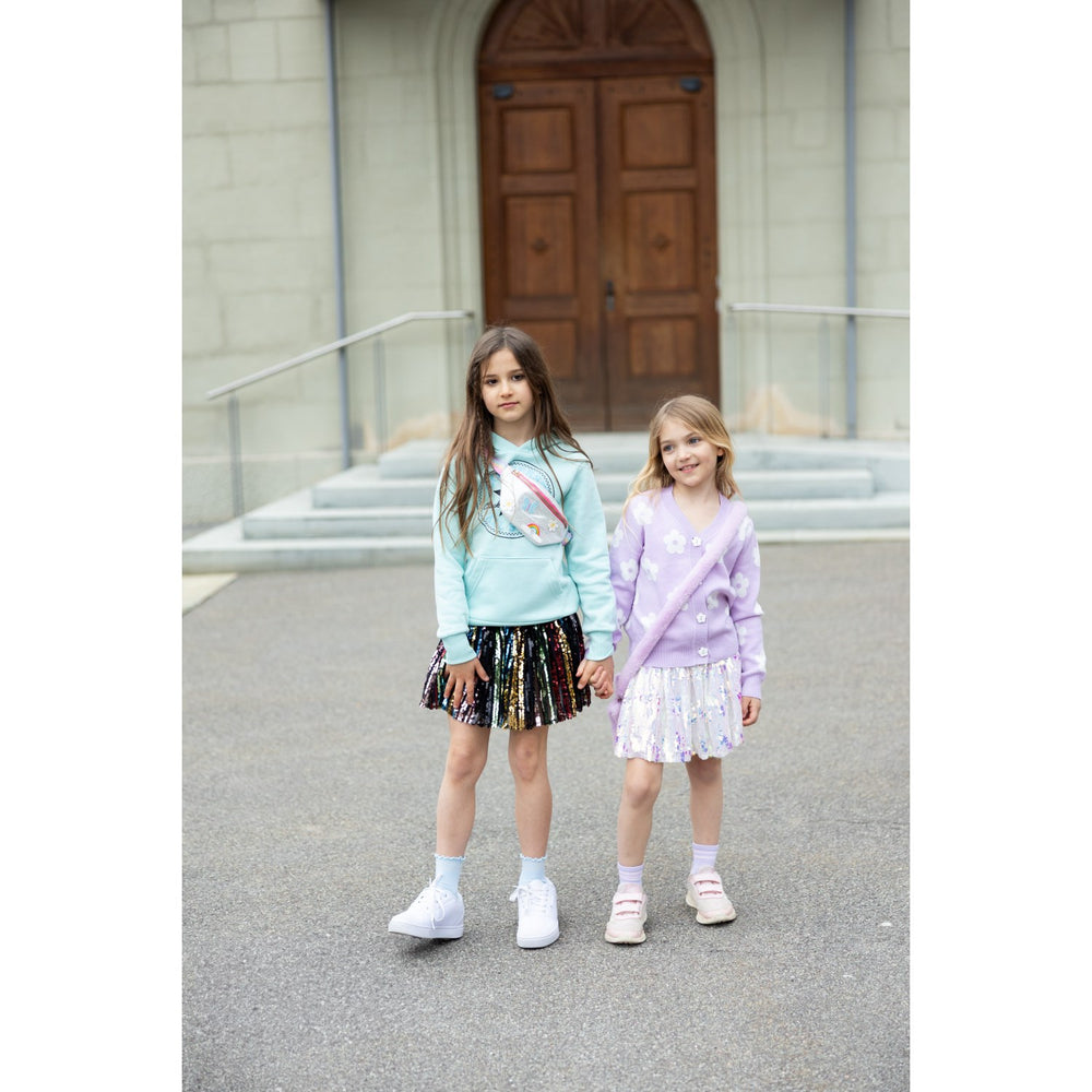 Let your little superstar shine on stage or at the playground in the Sequins Concert Queen Skirt! This twinkling skirt is a swirl of dazzling sequins designed to catch every light, with a range of sizes fitting US 4-6. Perfect for bold fashion statements and enchanting performances, it's crafted to spin, twirl, and sparkle all day long. Whether it's for a school concert or just a day full of play, this skirt guarantees a standing ovation wherever they go! Age: 4-6 years Materials: Polyester, Lastex, PET Washing instructions: Remember to follow washing and user instructions