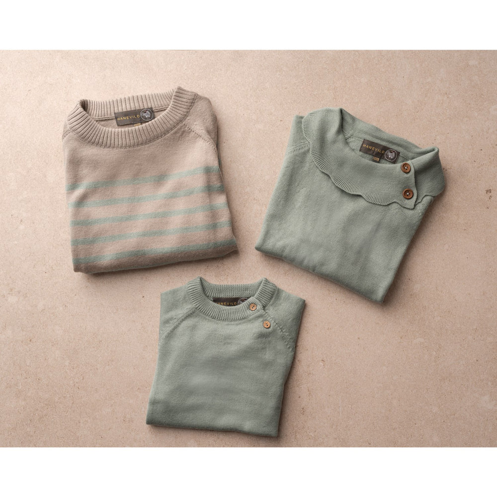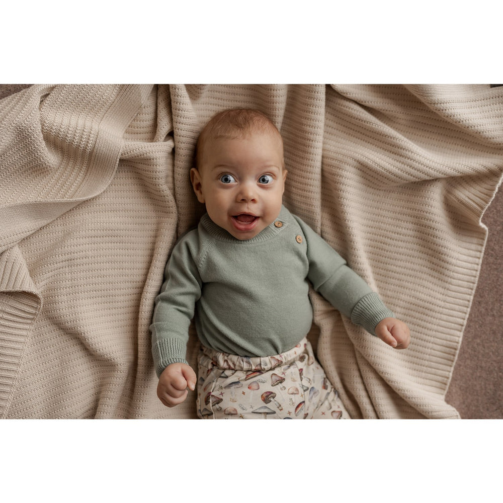 Discover comfort and style for your little one with our Hanevild Sage Martin Romper, crafted from 100% soft merino wool. This cozy, knitted piece is ideal for sensitive skin, ensuring optimal warmth and breathability. Its soothing sage color and exquisite design enhance its charming appeal. Effortlessly maintain its quality by wool washing and laying flat to dry, ensuring a delightful fit that's both functional and fashionable for everyday wear. Perfect for snuggly days, the romper is a blend of luxury and practicality.