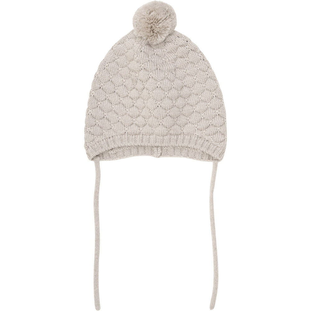 Huttelihut Sand Melange Bonnet Wool Knit Pompom