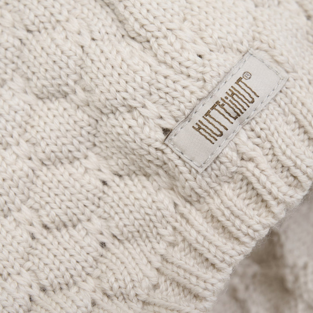 Keep your little one both cozy and chic with the Huttelihut Sand Melange Bonnet Wool Knit Pompom. This charming hat features a snug, round head shape accented with delightful details and a playful pompom, radiating a timeless elegance. Crafted from premium Merino wool, it offers exceptional comfort and wearabililty. The drawstring closure ensures a perfect fit around your child's chin. Embrace sustainable fashion with this OEKO-TEX® STANDARD 100 certified and WOOLMARK - Merino Extra Fine certified bonnet. Caring for this piece is straightforward; wash sparingly with a gentle wool detergent and lay flat to dry to maintain its quality and shape. This adorable bonnet not only keeps your child warm but also adds a touch of style to any outfit.