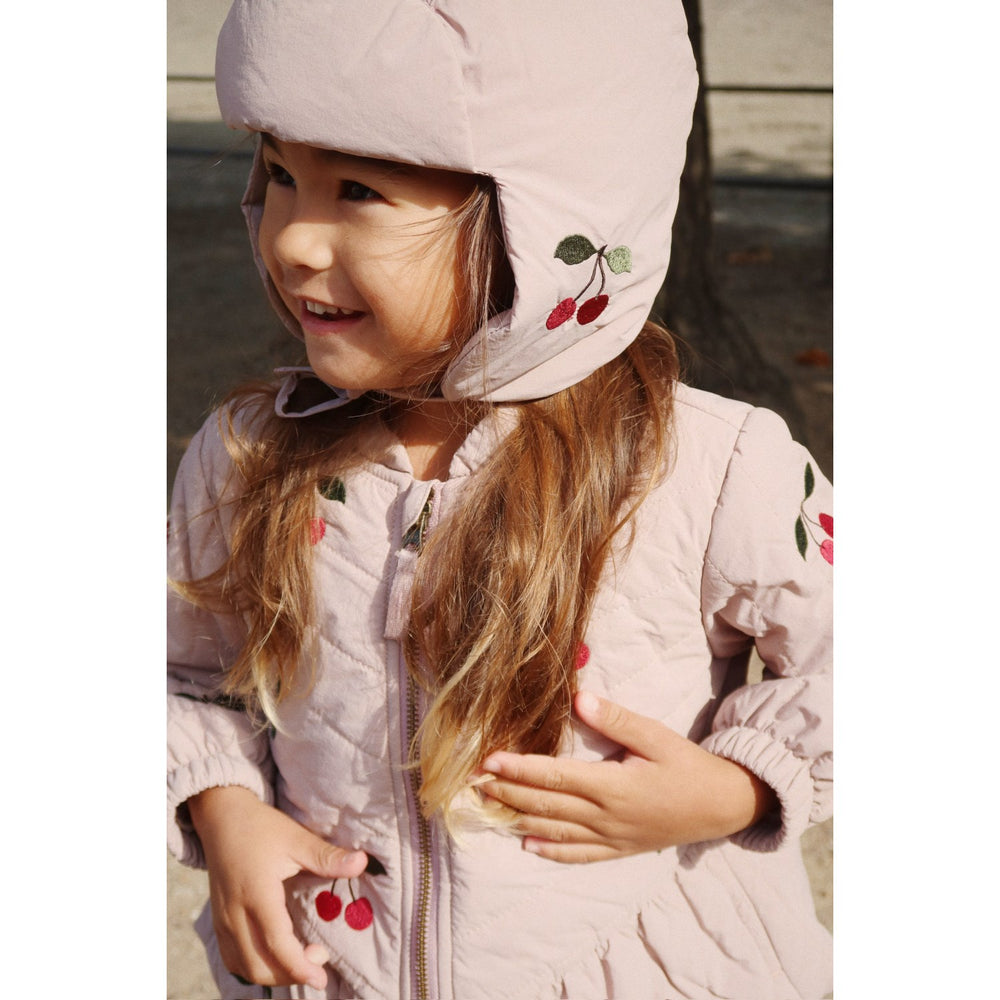 Introducing the Konges Sløjd Twilight Mauve Juno Hat, perfect for keeping little heads warm and snug. This soft, padded hat is crafted with a cozy fleece lining inside, ensuring comfort during colder days. It features practical ties under the chin for a secure fit and comes in a charming twilight mauve hue, adding a touch of style while providing warmth. Whether for daily outings or special occasions, this hat blends functionality with adorable design, making it an essential accessory for any child's wardrobe.