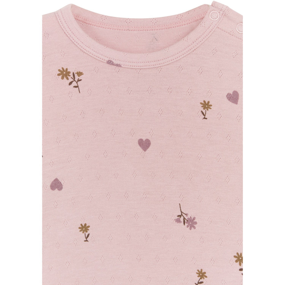Discover the charm and comfort of the Hust & Claire Dusty Rose Buller Bodystocking, perfect for your little one's wardrobe. This long-sleeved bodysuit is crafted from ultra-soft, stretchy bamboo viscose, ensuring a gentle touch on delicate skin. Adorned with a delightful hearts and flowers print, the design features an elegant eyelet pattern and ruched shoulders, adding a touch of whimsy and style.