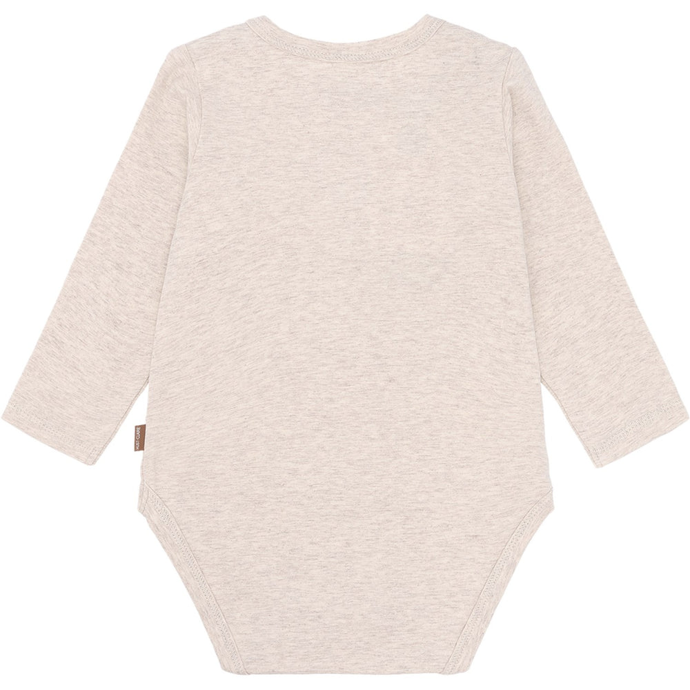 Designed thoughtfully with a button fastening on the right shoulder and between the legs, it allows for easy dressing and quick diaper changes, simplifying daily routines. The soft wheat melange color complements its playful pattern, making it both stylish and practical.