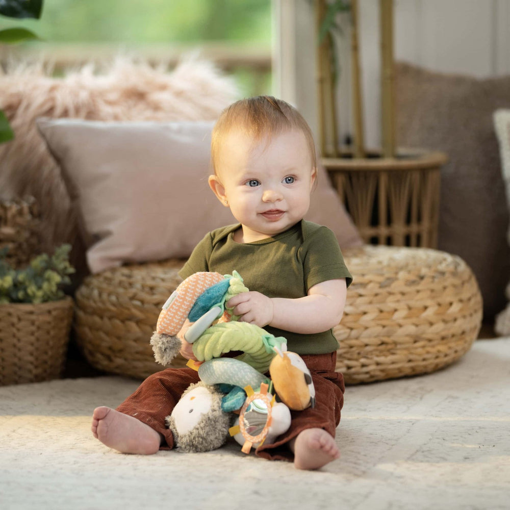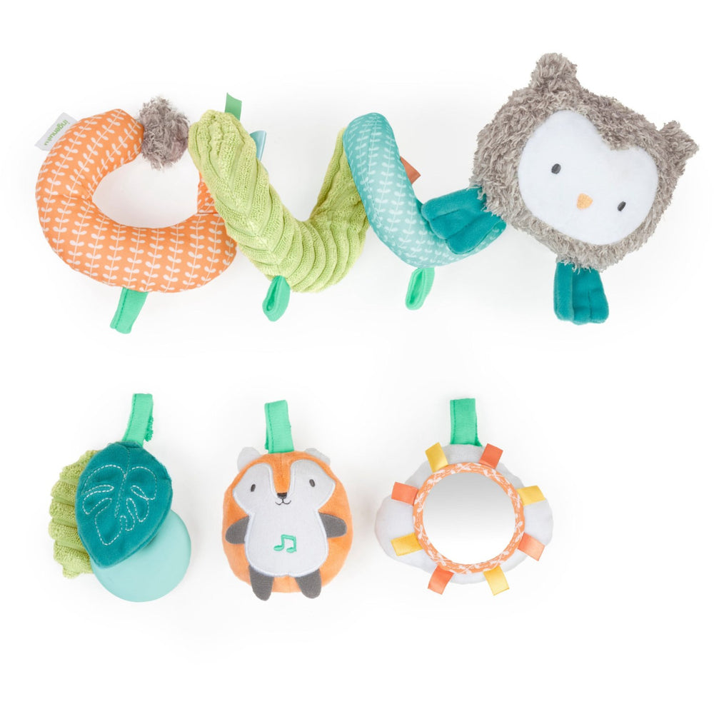 Introducing the delightful Ingenuity Nally & Friends™ Spiral Activity Toy Bar, a must-have for engaging little learners on adventures big and small. Crafted with safety and sensory stimulation in mind, this toy bar features a soft, spiral design that securely attaches to most carrier handles and stroller bars, ensuring play is always within reach. Each of the three included toys—a mirrored sun, musical fox, and a textured teether—offers a unique sensory experience designed to nurture your child's developing senses and motor skills. These removable and interchangeable toys make it easy to keep entertainment fresh and fun. Ideal for newborns and up, this portable activity bar promises to make outings enjoyable and educational, fostering curiosity and tactile exploration wherever you go. A perfect gift that combines amusement with developmental benefits, it's designed to bring joy and laughter to your journeys.