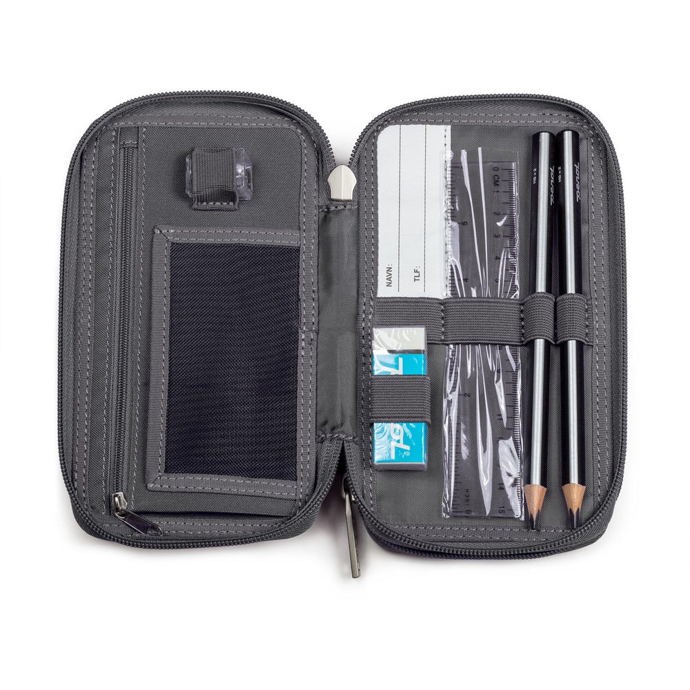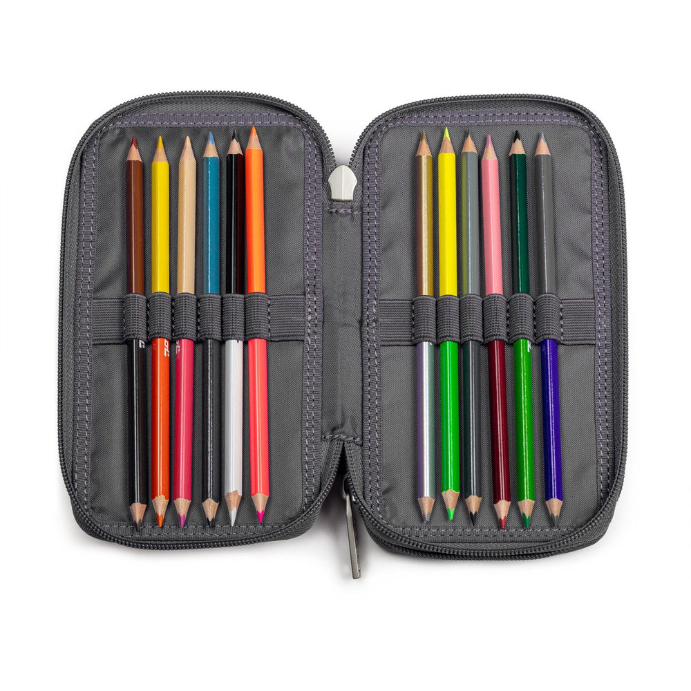 Discover the perfect companion for your child's school adventures with the JEVA Football Pencil Case With Fyld Twozip 8865. Expertly designed to keep school supplies organized and secure, this top-notch pencil case features multiple storage options including a large zippered pocket and a specialized mesh pocket ideal for safeguarding UNI login and copy cards. Each case comes filled with high-quality, ergonomically designed pencils and crayons, ensuring comfort and ease of use for students. The dual-ended crayons expand color options to 24 vibrant shades, enhancing creativity without the need to carry extra art supplies. A handy ruler, eraser, and pencil sharpener further enrich this all-in-one solution. Safety is also paramount, as demonstrated by the nameplate for easy identification and dedicated external pockets on JEVA's school backpacks, preventing the case from moving around inside the bag. Delight your child with this engaging, functional, and safe storage option that stimulates organization and creativity.