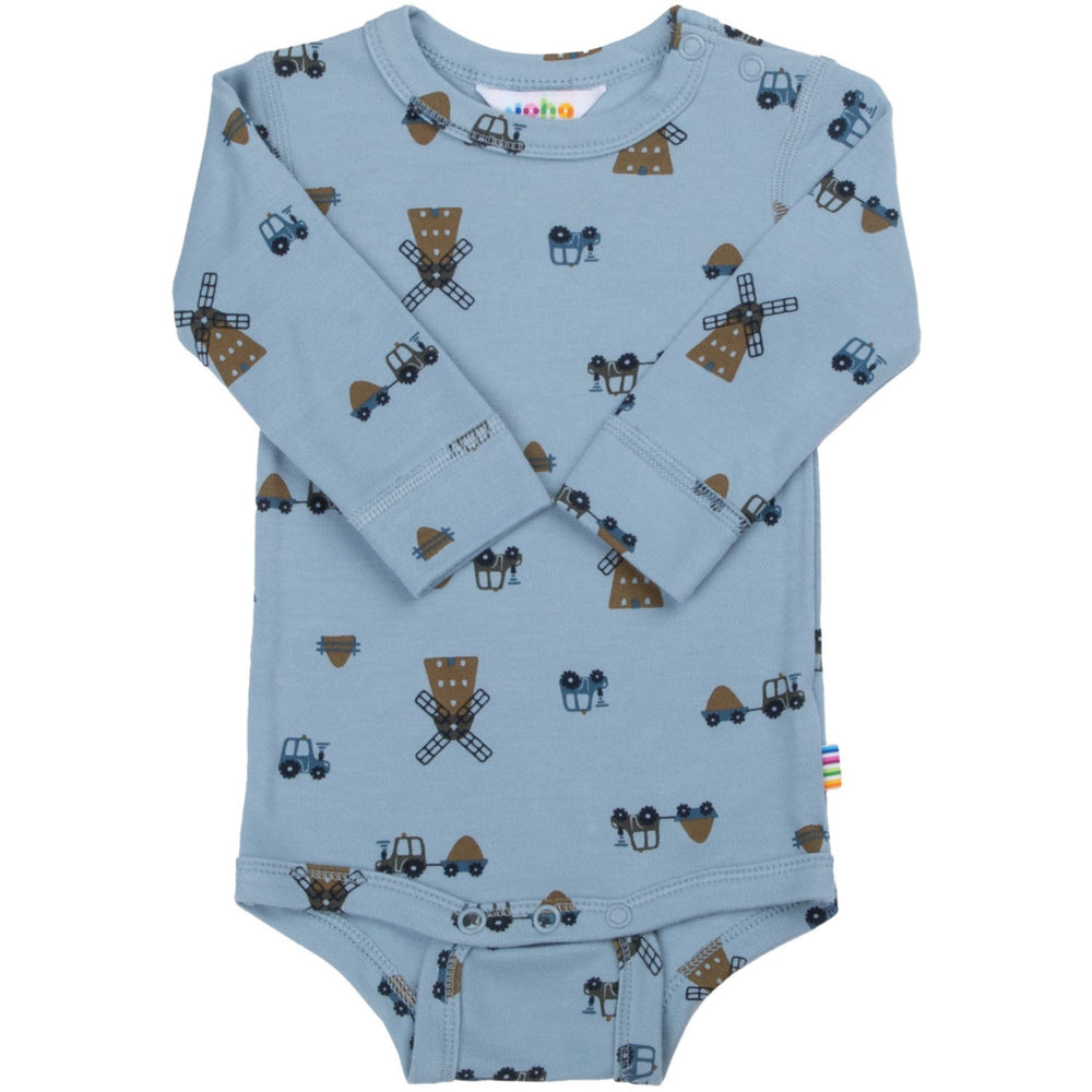 Discover the comfort and gentle touch of the Joha Blue Bodystocking, perfect for your little one's delicate skin. Crafted from 100% organic bamboo, this bodysuit features a luxuriously soft viscose quality that offers unmatched comfort and a smooth surface that feels delightful against the skin. The smart design includes long sleeves and convenient snap buttons on one shoulder and between the legs for easy dressing and quick diaper changes.