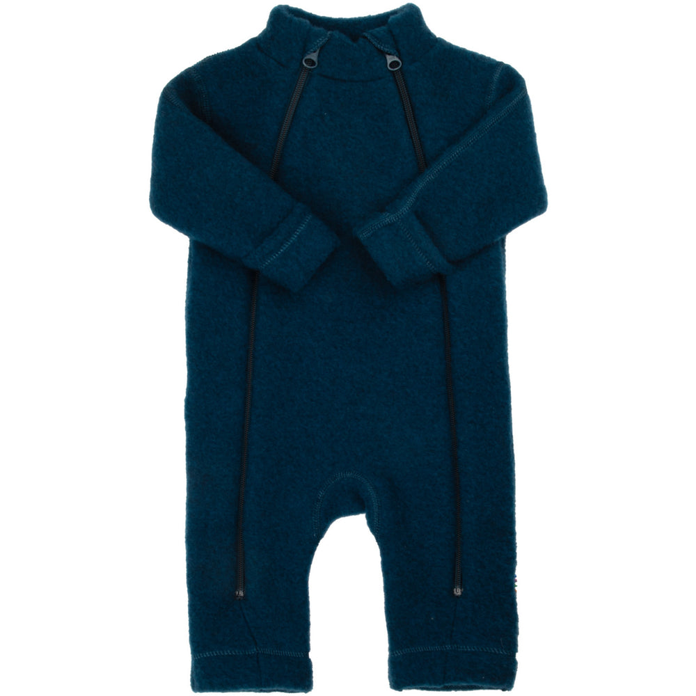 Dress your little one in the Joha Dark Turquoise Onesie, featuring a versatile 2-in-1 design with foldable hands and feet for easy adjustments. Crafted from Oeko-tex 100 certified pure merino wool, this onesie is exceptionally soft and stretchy, ensuring comfort and durability. The double zipper front simplifies dressing, while the sleek, plain design in a vibrant dark turquoise enhances style. Ideal for cozy pram rides or car travels, it combines practicality with snug warmth and fashionable flair.