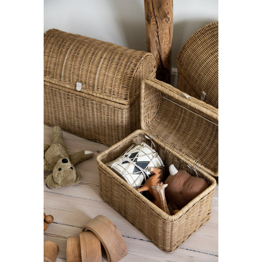 Brighten up your child's space with our handwoven KAS Kopenhagen Dessert Kas Baskets. Available in three sizes, these charming baskets ensure safe and functional storage, neatly tucking away toys and essentials while adding a touch of elegance to any decor. Crafted from natural materials, each piece is unique, offering a gentle variation in color and shape that encourages a stimulating environment. These versatile baskets are not only perfect for organizing but also for instilling a sense of order and beauty in your child's room, making everyday cleaning an enjoyable activity. Materials: Raffia & Leather Handle