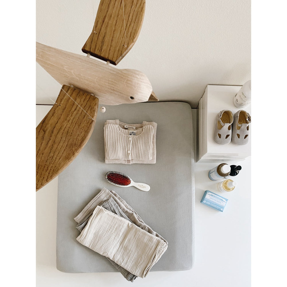 Introduce the enchanting charm of the KAS Kopenhagen Smoked Oak Wings Flying Koko to your child's nursery. This timelessly designed mobile features a classic oak bird, Koko, whose wings gracefully flap when the string is pulled. Perfect for hanging over a cot or changing table, Koko’s gentle movements captivate and stimulate your baby's developing senses, offering both tranquility and visual engagement. Crafted with an eye toward sustainability, the all-natural materials and soft contours echo the beloved mobile designs of the 1980s, while ensuring safety and durability. Although intended purely for decorative use and should be placed out of children's reach, this mobile serves as an ideal addition to create a soothing environment for your baby. Its easy maintenance and slim design allow for effortless portability and storage, making it a lasting treasure in your child’s room.