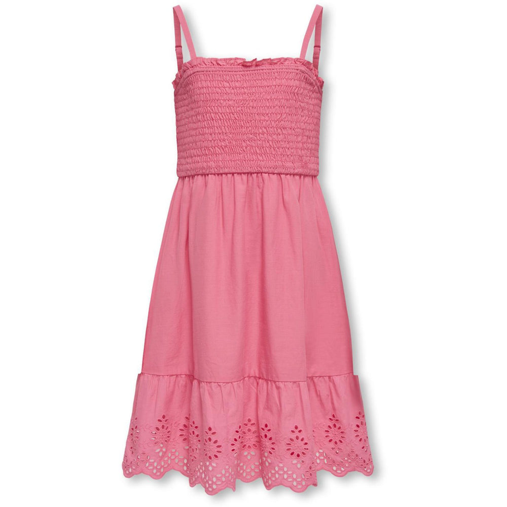Dress your little one in the charming KIDS ONLY Camellia Rose Lou Life Embroidery Smock Dress, perfect for any season. Made with adjustable thin straps and a comfortable square neckline, this sleeveless, slim-fit midi dress features exquisite embroidery and stylish smock details. Crafted for both style and ease, it promises a snug fit and easy care, making it an ideal choice for children's dynamic lifestyles and special occasions alike. Whether at a party or a playdate, your child is set to shine.