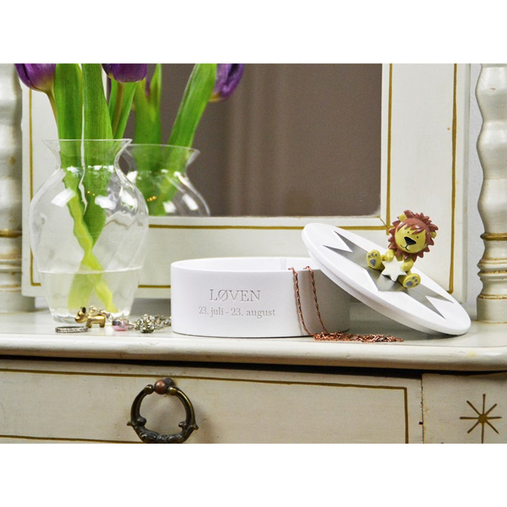 Introducing the Kids by Friis Løven Jewellery Box – perfect for young explorers! This charming box features a removable lid and clear plexiglass, designed to keep treasured items safe and visible. Ideal for teaching youngsters about organizing and safeguarding their beloved pieces, its inviting lion design adds a playful touch to any child's room, blending seamlessly with their decor. An attractive yet practical piece that promotes responsibility and adds a burst of fun to daily routines! Materials: Polyresin
