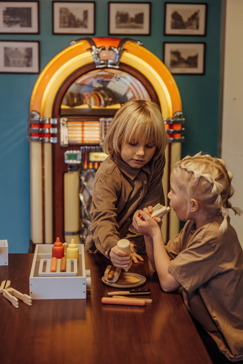 Introduce your little one to the fun-filled world of culinary creativity with our delightful wooden hot dog stand from Mamamemo. Perfectly designed for tiny hands, this playset comes complete with lifelike sausages, bread, tweezers, crispy fries, and a refreshing soda to serve up exciting fantasy meals. With its vibrant colors and easy-to-use accessories, children will love whipping up delicious treats for friends, family, or even plush companions.