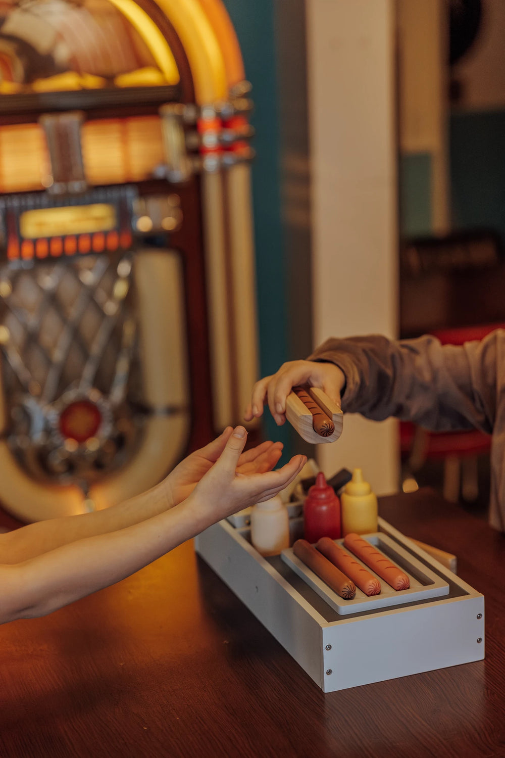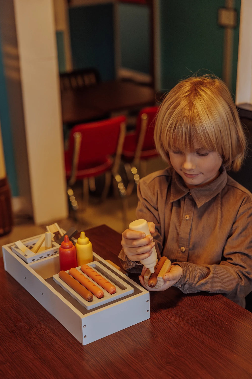 Crafted with robust, child-friendly materials, our hot dog stand ensures safety and durability through countless hours of imaginative play. Its compact design makes it convenient for easy storage and portability, allowing young chefs to set up shop wherever they go. The interactive setup promotes educational value by enhancing fine motor skills, social interactions, and creative thinking. Ideal for kids eager to explore role-playing scenarios, this toy provides an engaging and educational experience that combines fun and learning in every play session.