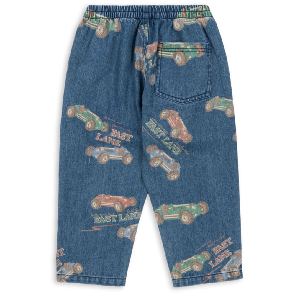 Keep your little one comfy and on-trend with these Konges Sløjd Fast Lane Magot Pants. Crafted from 100% GOTS-certified organic cotton, these soft denim pants feature a stylish straight fit and an elastic waist for ease of wear. Boasting a vibrant design that may bleed colour, please wash these pants separately. Perfect for playdates and exploring, these pants ensure both comfort and durability.