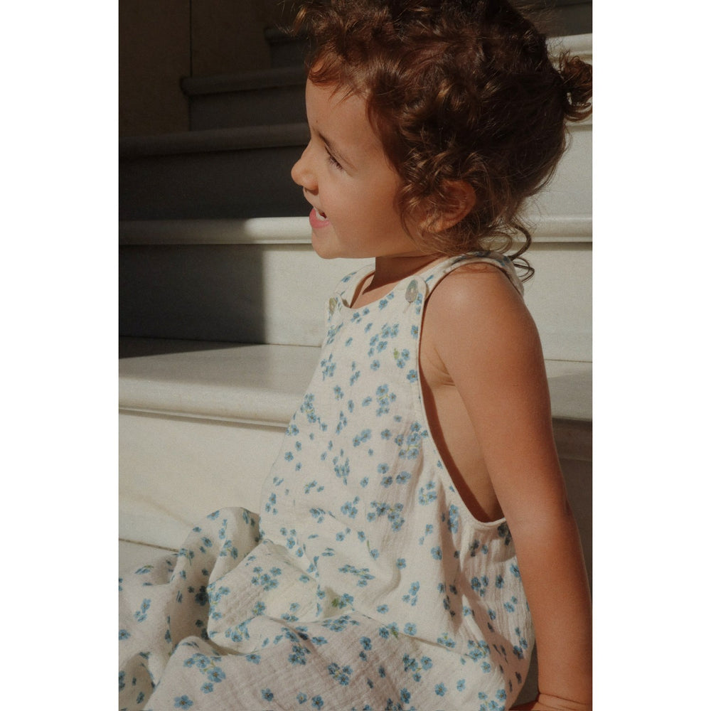 Discover the charm of childhood with our Konges Sløjd Forget Me Not RHW X KS Mioblu Overalls. Made from soft, organic cotton muslin, these light overalls are designed with a delicate forget-me-not flower print, reflecting a nostalgic tribute to sweet memories. Perfect for playful days and comfortable explorations, they ensure easy care and a gentle touch on your child's skin. Embrace style and sustainability effortlessly with these delightful overalls.