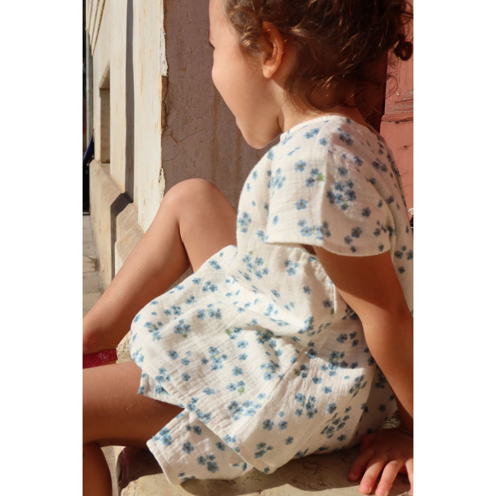 Introducing the charming Konges Sløjd Forget Me Not RHW X KS Mioblu Top! Designed with love, the top features a hand-drawn forget-me-not print, celebrating Rosie's cherished childhood memories. Crafted from light organic cotton muslin, this soft short-sleeved top promises supreme comfort and durability, perfect for playful children. Its gentle fabric is not only breathable but also easy to care for, ensuring it stays fresh and vibrant wear after wear. Ideal for daily adventures, this delightful top blends nostalgic aesthetics with practical design, making it a must-have in any child's wardrobe.