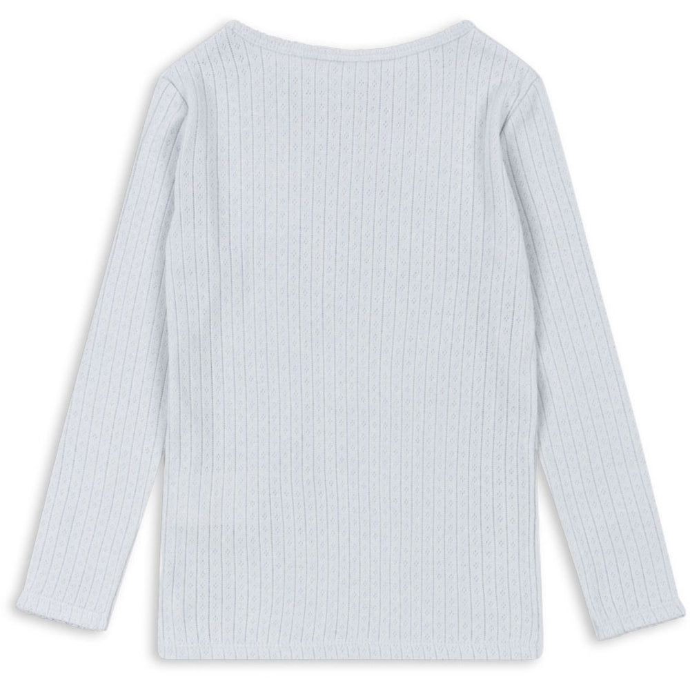 Introducing the Konges Sløjd Gray Dawn Minnie Blouse, a charming addition to any child's wardrobe. Crafted from GOTS-certified soft cotton and adorned with decorative pointelle, this blouse blends comfort with style. The elegant gray dawn color and subtle pattern enhance its timeless appeal, making it an essential for both casual and dressy occasions. Easy to care for, it promises durability and comfort, ensuring it becomes a go-to piece for any budding fashionista.