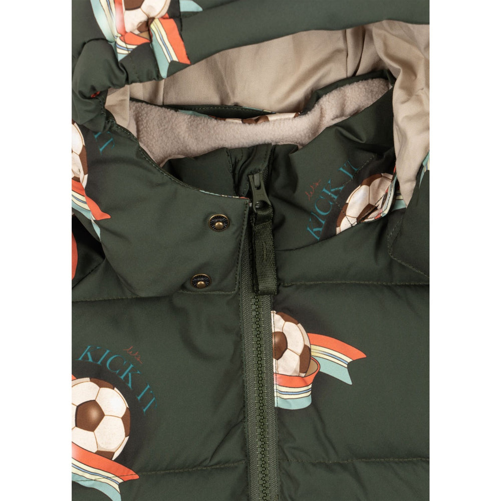 Discover cozy comfort for your little one with the Konges Sløjd Green/Kick It Nuka Jacket Grs. This warm puffer jacket is crafted with water-repellent and wind-resistant materials to shield against the elements. Featuring a detachable hood and practical storm cuffs, the design is enhanced with THERMOLITE® EcoMade padding for lightweight yet effective insulation. Perfect for playful days out, it promises durability and style while keeping your child snug and dry.