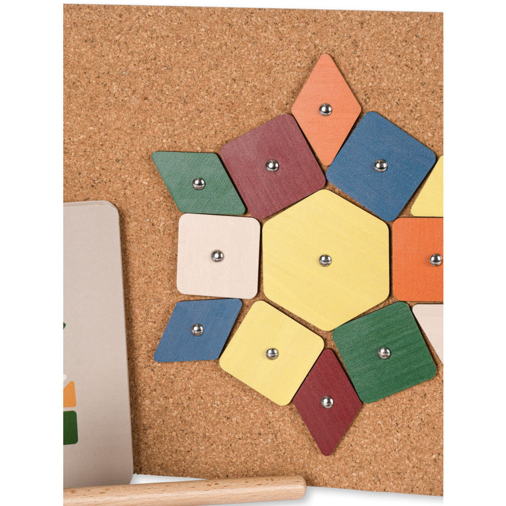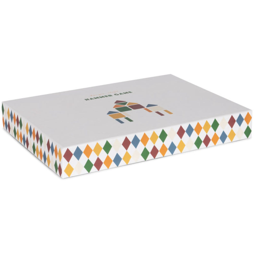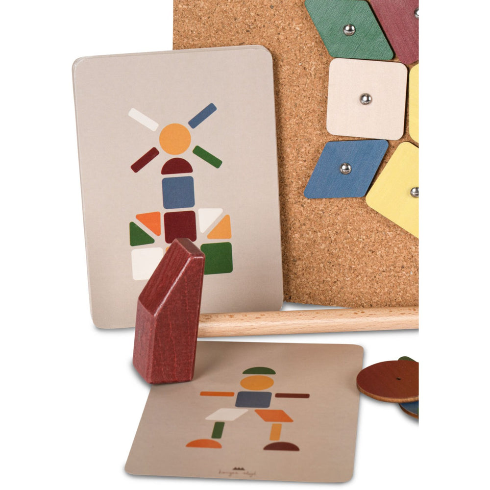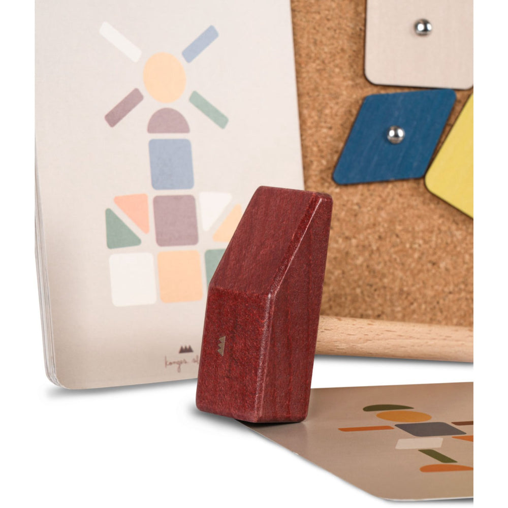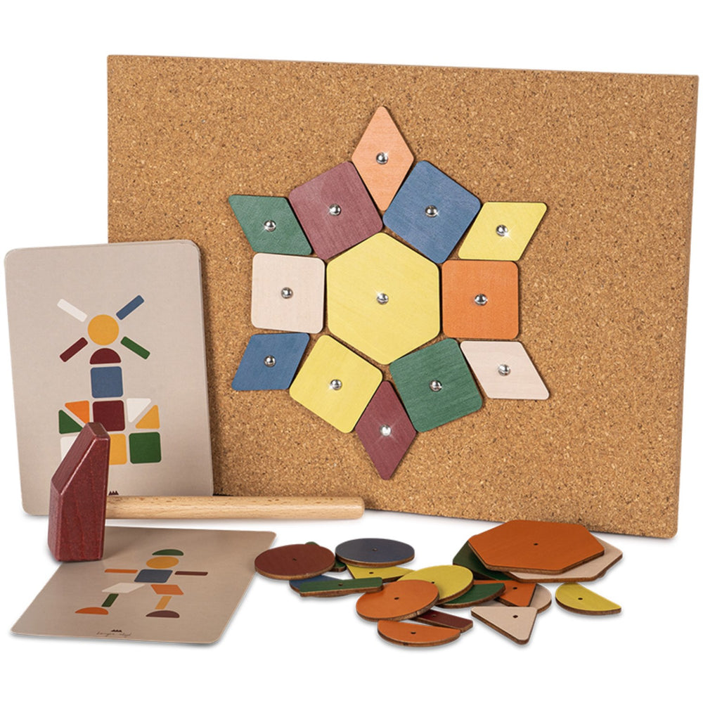 Introducing the Konges Sløjd Multi Cork Hammer Game, a delightful and creative way to engage your little ones. Perfect for children aged 3 years and up, this game features 42 colorful wooden pieces and 50 metal nails, ideal for creating endless artistic patterns. Each set includes 12 inspiring design cards to aid creativity, a sturdy hammer made of FSC™-certified beech wood, and a cork board for a safe, secure workspace. Crafted with child safety in mind, the components are large enough to handle easily yet small enough to challenge their dexterity. This kit not only promotes creativity but also enhances fine motor skills and cognitive development through pattern recognition and problem-solving tasks. Compact and easy to store, the Multi Cork Hammer Game makes setting up and cleaning up a breeze. A wonderful educational tool that combines fun with learning, it’s perfect for both home and travel, ensuring your child's imagination can flourish anywhere.