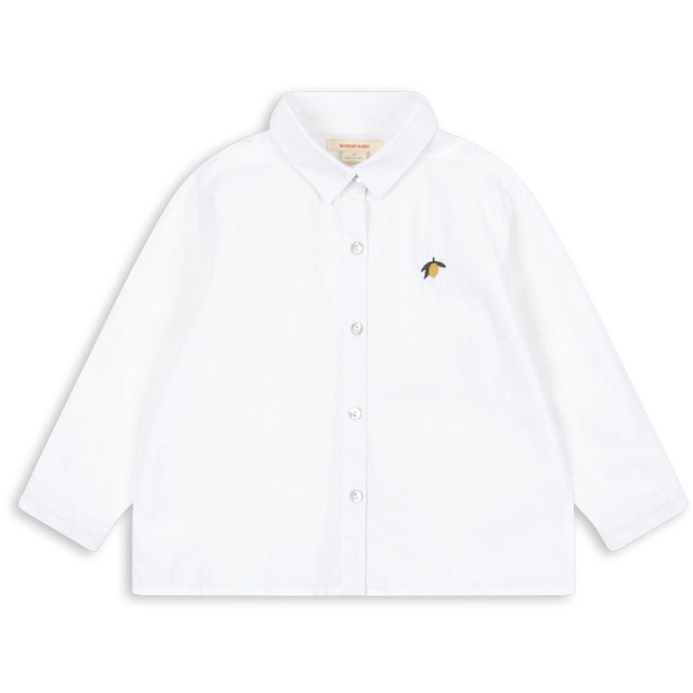 Introduce your little one to the epitome of style and sustainability with the Konges Sløjd Optic White Ray Shirt. Crafted from 100% GOTS-certified organic cotton, this crisp white shirt features a classic regular collar and slim button cuffs. The playful lemon print on the chest adds a touch of whimsy, while the elegant mother of pearl buttons ensure easy dressing. Perfectly combining comfort with chic design, this shirt promises to keep your child looking sharp and feeling comfortable, whether it's a day at the park or a special family gathering. Materials: 100% Organic Cotton Certifications: GOTS ORGANIC