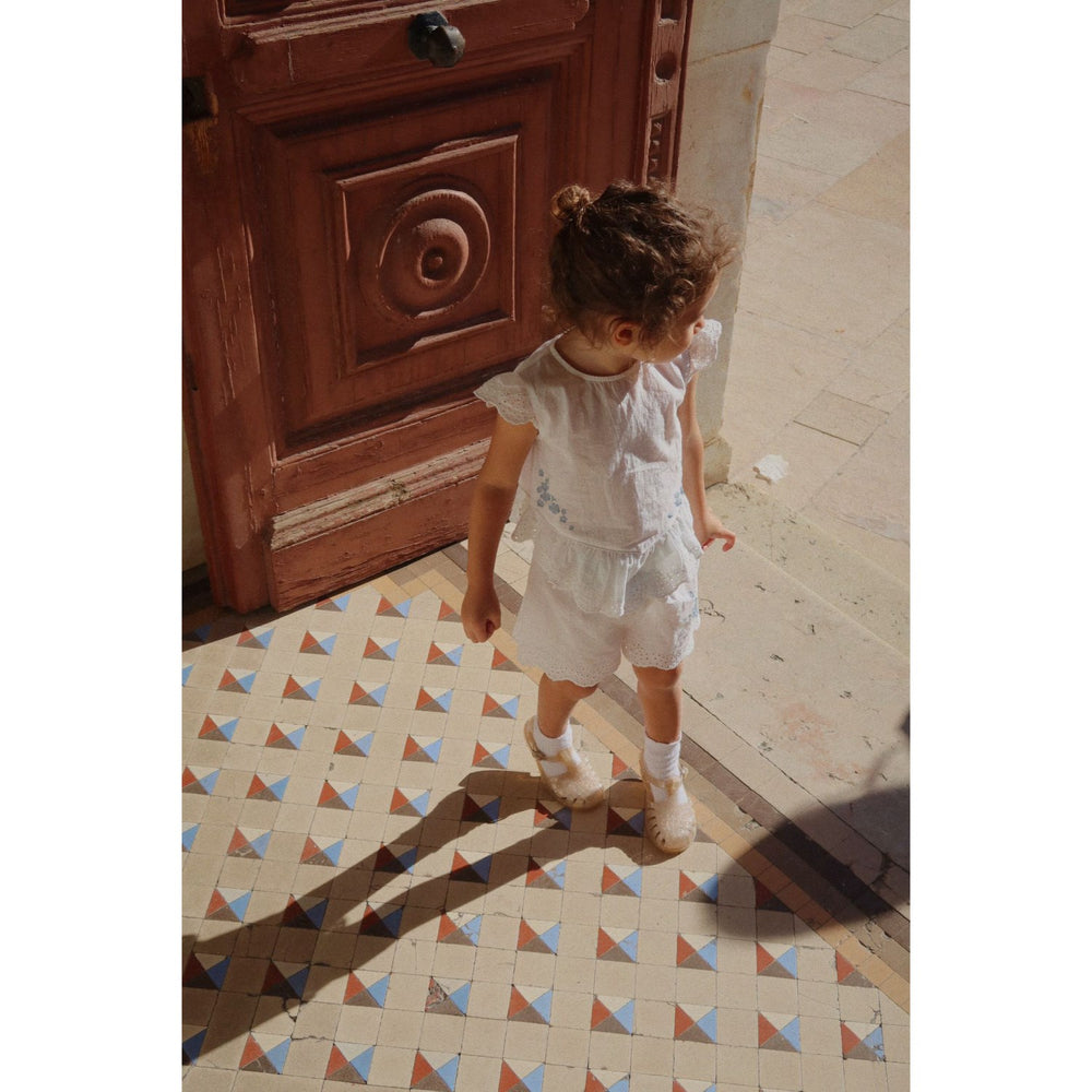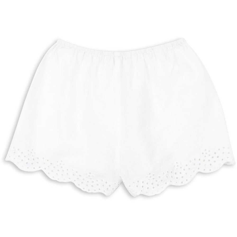 Discover the charm and comfort of the Konges Sløjd Optic White RHW X KS Fiori Shorts, perfect for your little one's summer adventures. These airy shorts are crafted from 100% organic cotton poplin, featuring exquisite broderie anglaise detailing along the hems for a touch of elegance. The soft elastic waistband ensures a snug and comfortable fit, while the GOTS certification assures you of high environmental and social standards. Ideal for both play dates and family outings, these shorts promise both style and ease of wear, making them a must-have in any child's wardrobe.