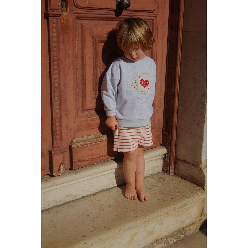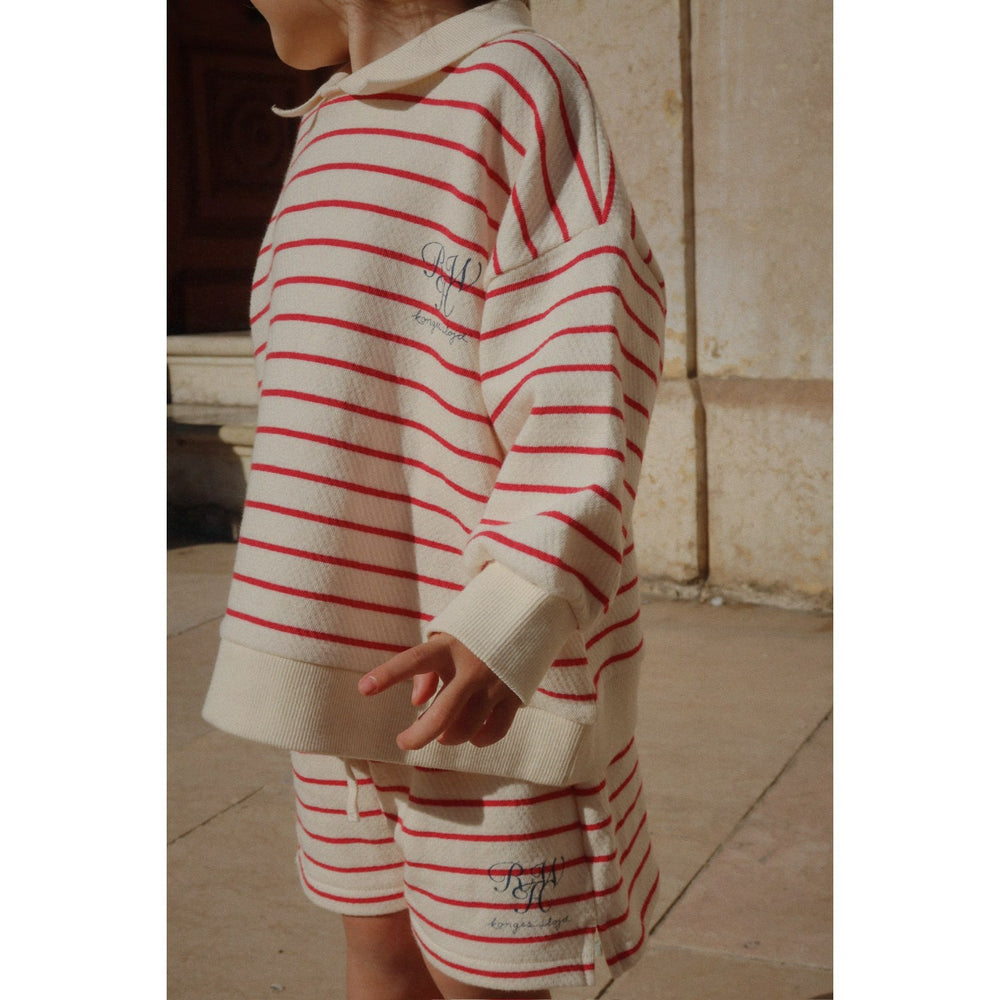 Introduce your child to the cozy comfort of Konges Sløjd's Porta Tripe RHW X KS Largo Shorts, crafted from soft, 100% GOTS-certified organic cotton jersey. These classic striped shorts offer a relaxed fit and adjustable drawstring waist for a perfect fit. With their timeless style and side slits for extra flexibility, they are ideal for both playtime and relaxation. Easy to care for and endlessly wearable, these shorts blend eco-friendly fashion with practicality, making them a perfect addition to any child's wardrobe.