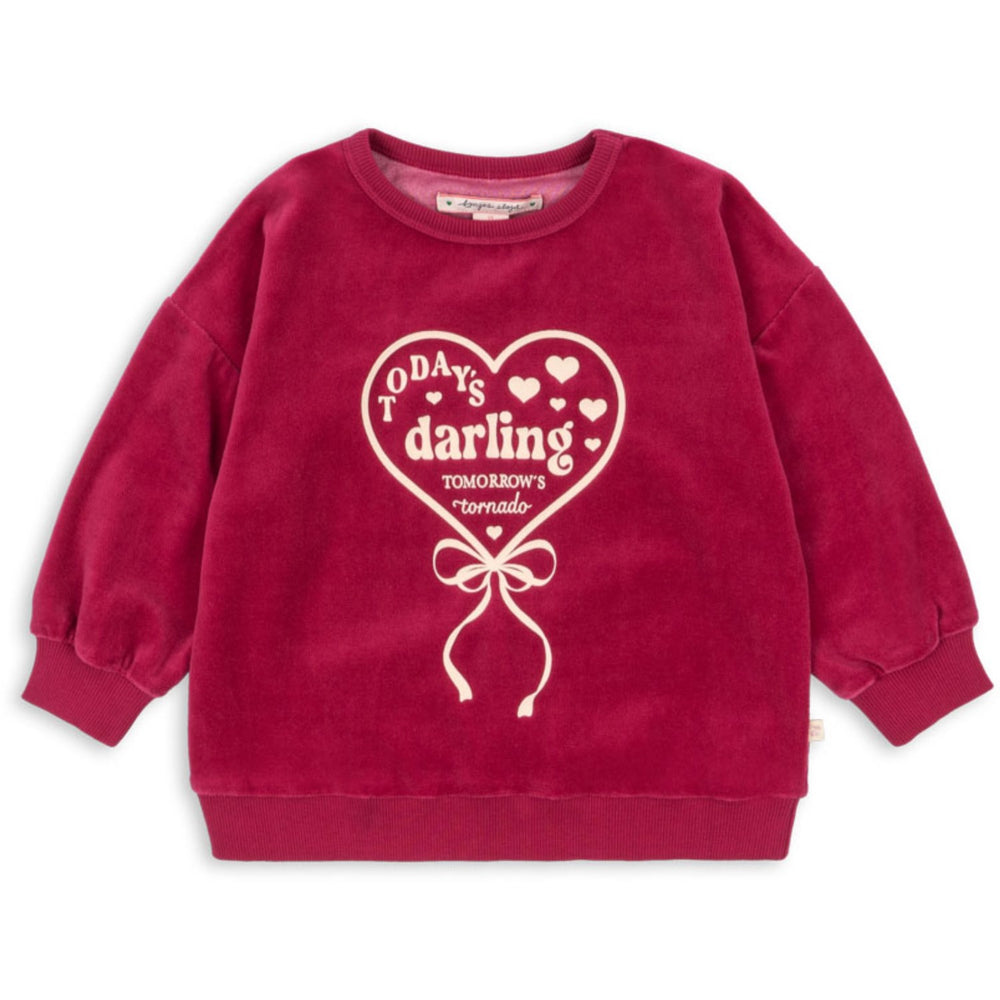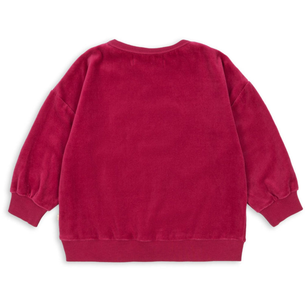 Introducing the Konges Sløjd Sangria Velou Blouse, exquisitely crafted in a sweatshirt style that combines classic charm with modern sustainability. With 80% organic cotton and 20% recycled polyester, this soft velvet blouse not only feels luxurious but also supports eco-conscious apparel choices as confirmed by its GOTS certification (CU 1094701). Ideal for pairing with jeans or layered over dresses, this piece offers versatility in a child-friendly design that emphasizes comfort and durability. Perfect for everyday wear, it helps little ones stay cozy while making a positive impact on the environment.