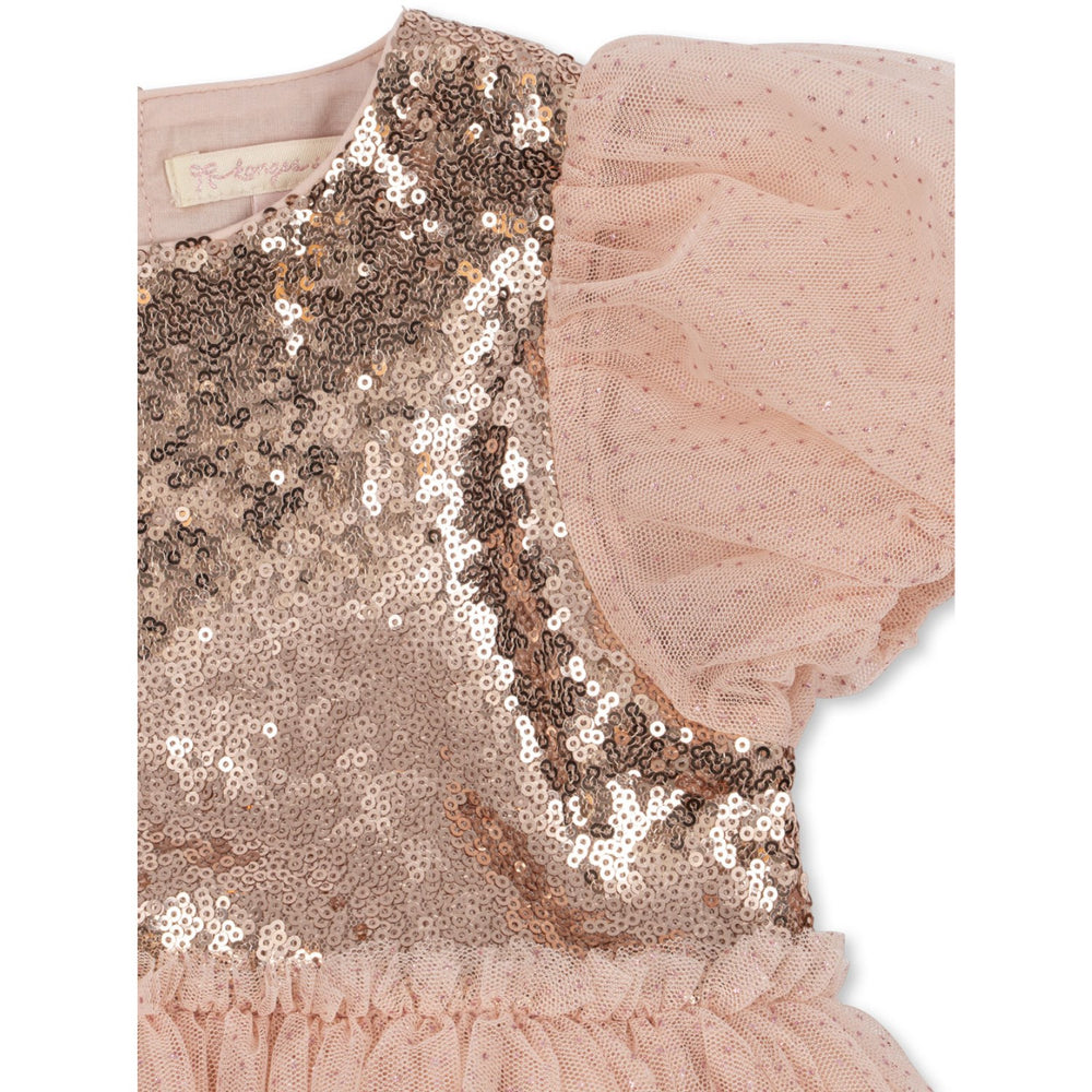 Introduce your little one to the magical world of style with the Konges Sløjd Smoke Gray Mei Dress. This enchanting puff sleeve dress features a sparkly sequin bodice and a voluminous layered tulle skirt, perfect for any special occasion. Crafted from 100% polyester and lined with soft 100% cotton, it promises top comfort and wearability. The thoughtful design includes a practical button closure at the back, making dressing hassle-free. Ideal for celebrations, this dress combines durability with a dazzling look.