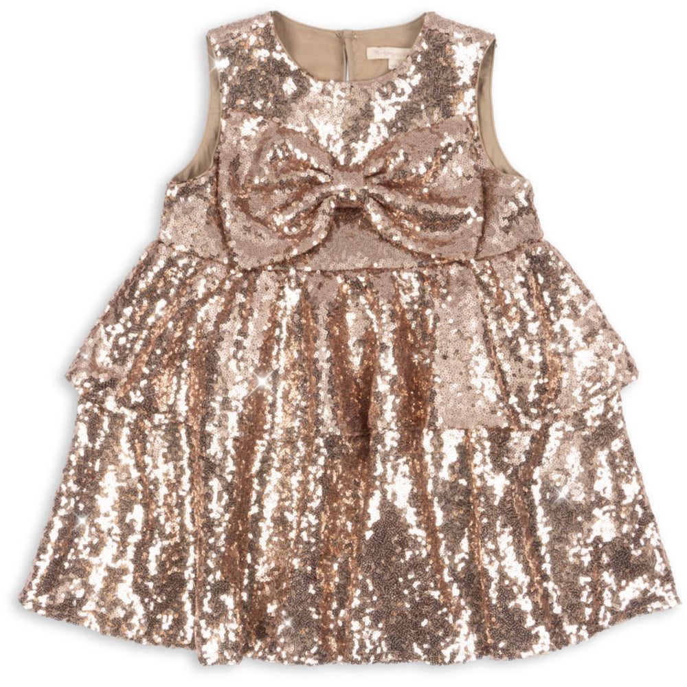 Introduce a touch of enchantment to your child's wardrobe with the Konges Sløjd Smoke Gray Rosie Dress. This dazzling dress features all-over sequins and a striking oversized bow, making it perfect for any festive occasion. Crafted for comfortable wear, it allows for endless twirling. Ideal for special gatherings or just adding sparkle to everyday, this dress combines effortless style with festive fun. Easy to care for, it ensures lasting beauty and enjoyment. Materials: 100% Polyester 100% Cotton Lining