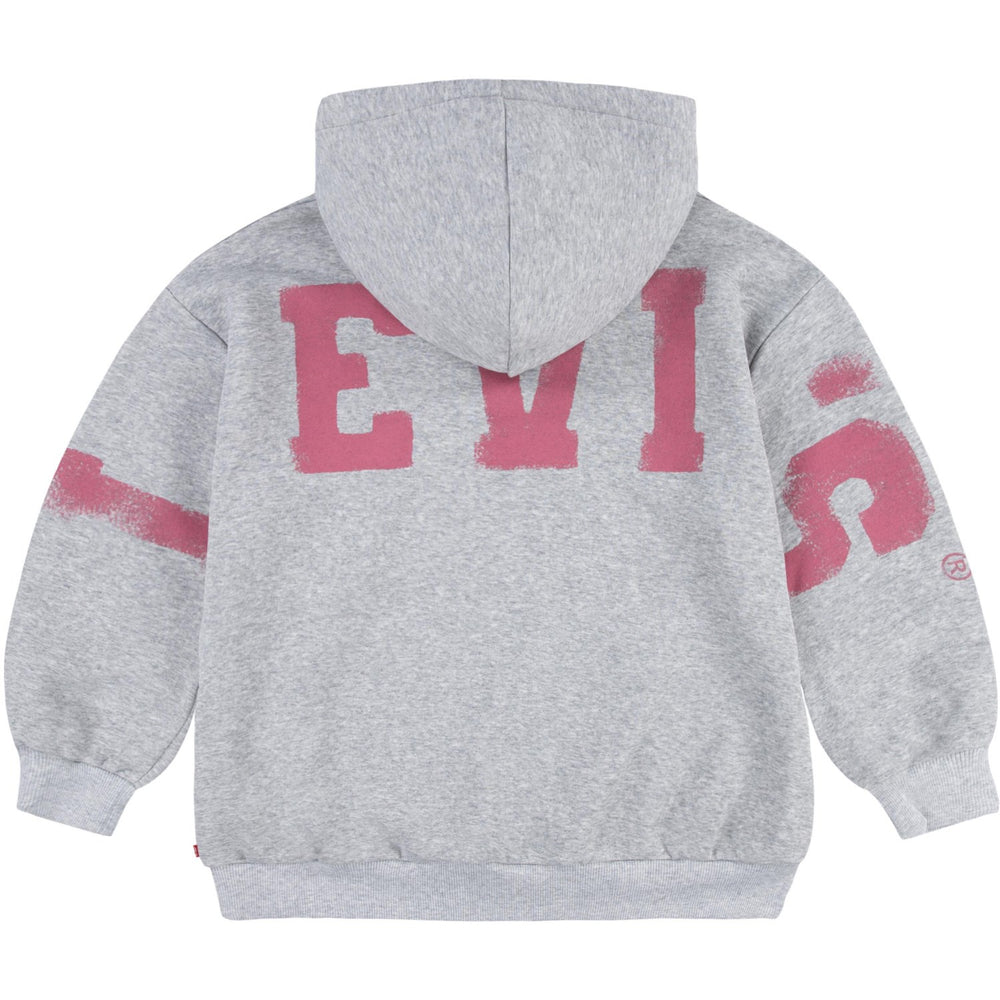 Introducing the perfect blend of comfort and style for your child: the Levi's® Grey Collegate Pullover Hoodie. Designed with plush, high-quality organic yarn fleece, this hoodie provides softness while ensuring eco-friendly wear. Featuring a ribbed hem and cuffs, it offers an excellent fit that allows room for unrestricted movement and easy layering.