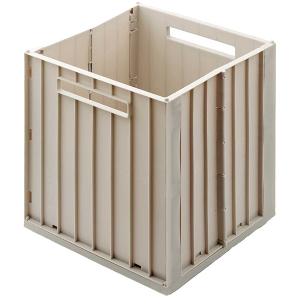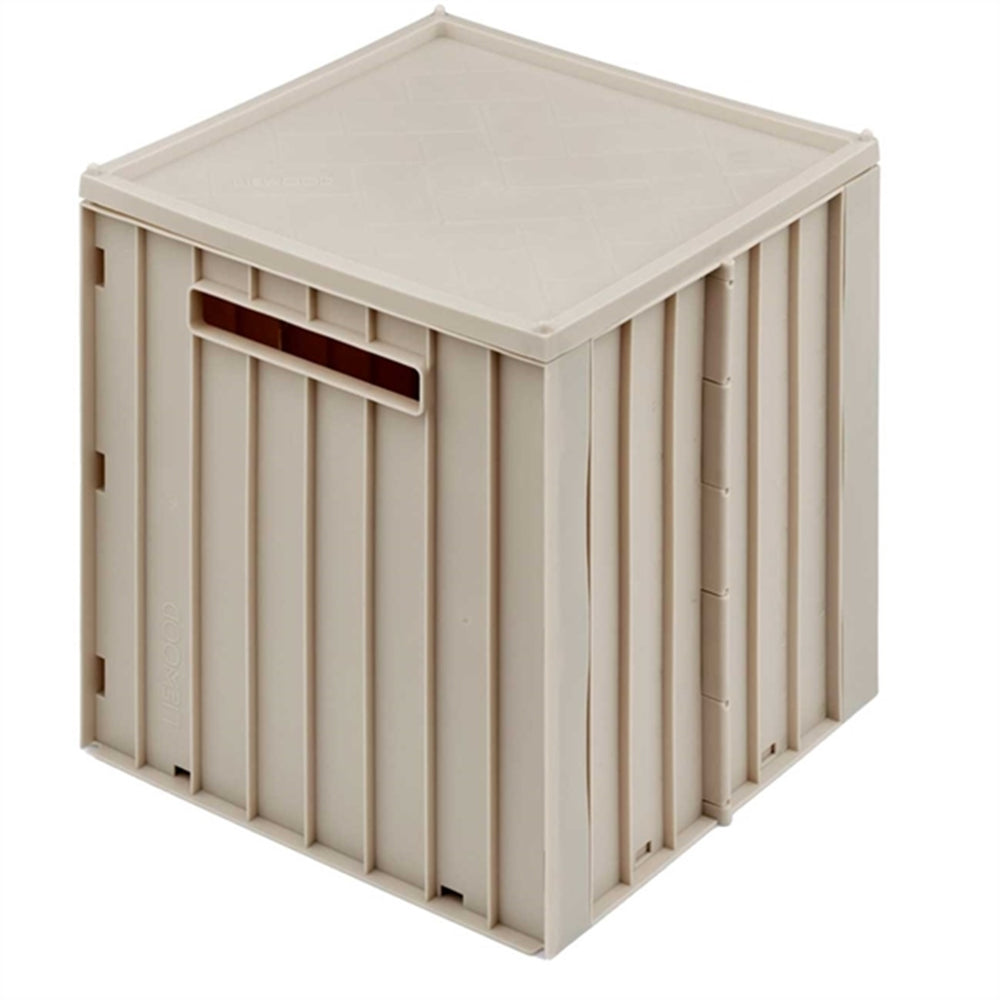 Keep clutter at bay with the lively Elijah Storage Box from Liewood! This cube-shaped charmer comes in a sandy shade that fits quietly into any room's decor. Perfect for swallowing up toys, crafts, and all sorts of treasures, it offers a neat and tidy refuge with its handy lid. Crafted from 60% recycled materials, it's not only lightweight and durable but also kind to the planet. Bonus feature: it stacks and folds when not in use, making it super simple to store. Welcome to a tidier space with a dash of style!