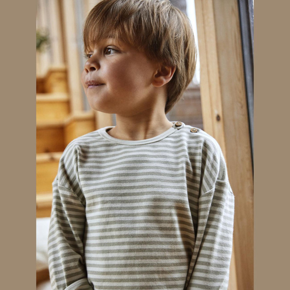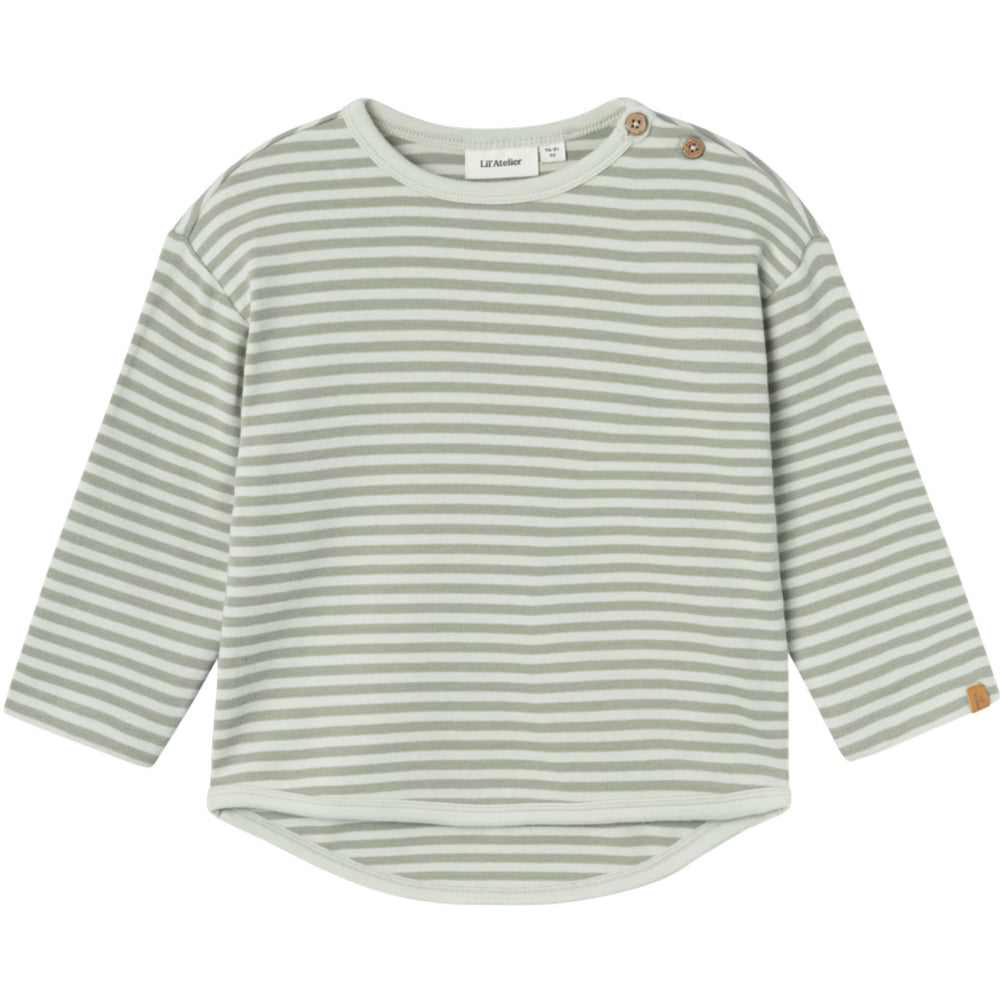 Introducing the Lil'Atelier Green Tint Geo Alk Blouse – a blend of comfort and style crafted perfectly for your youngster's wardrobe. Crafted from jersey, this top is celebrated for its lightweight and stretchable qualities, ensuring your child experiences freedom of movement coupled with a soft texture both inside and out.