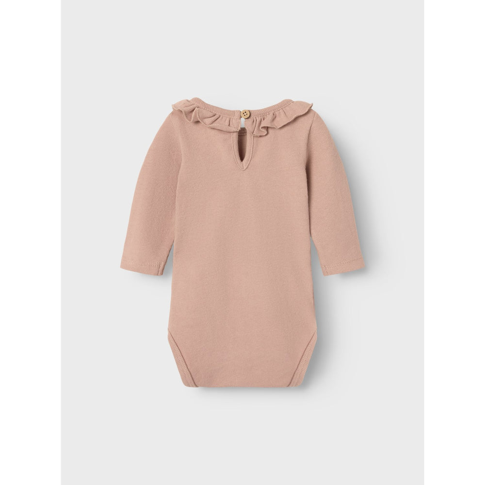 Dress your little one in the chic comfort of the Lil'Atelier Misty Rose Nbfluna Ls Slim Body. Featuring a soft, stretchy jersey fabric that ensures ease of movement and a snug fit, this bodysuit boasts a delightful round neck and long sleeves perfect for cooler days. Adorned with charming frills and subtle label details, it comes in a lovely misty rose hue with practical button and press stud fastenings for easy dressing. Carefully crafted to keep your child both stylish and comfortable, remember to keep this garment away from fire during use. A must-have addition to your child’s wardrobe!