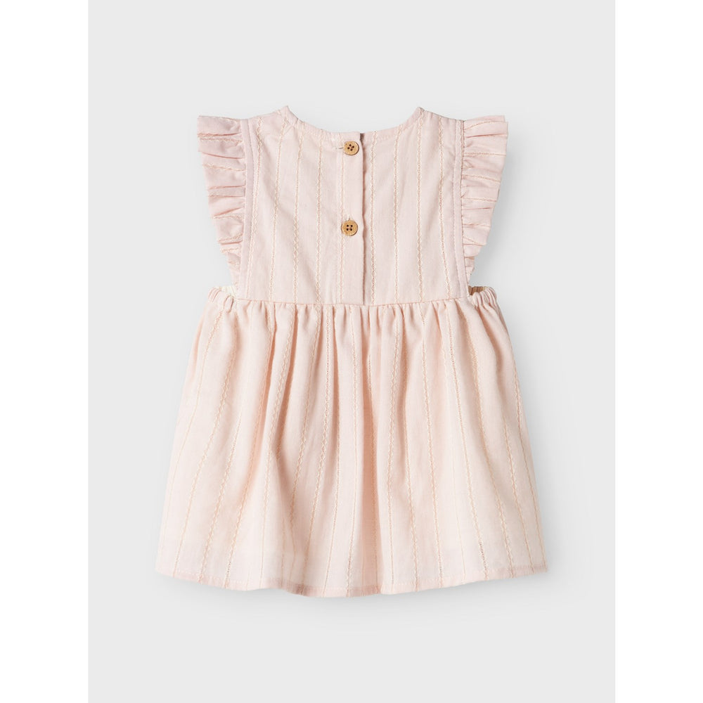 Dress your little one in the effortlessly stylish Lil'Atelier Peach Whip Dalila Loose Skirtall, an exemplary choice for everyday wear. Tailored from woven fabric with a criss-cross texture, this dress features a pristine, classic appeal. Its sleeveless design, adorned with charming frills and a round neckline, enhances its trendy look. The loose fit ensures ample freedom of movement, making it perfect for play. Secure and easy dressing is guaranteed with the practical button fastening. Notably durable and easy to care for, this garment combines both fashion and function, ideal for your child's active and stylish lifestyle. Remember, keep it away from fire for safety.