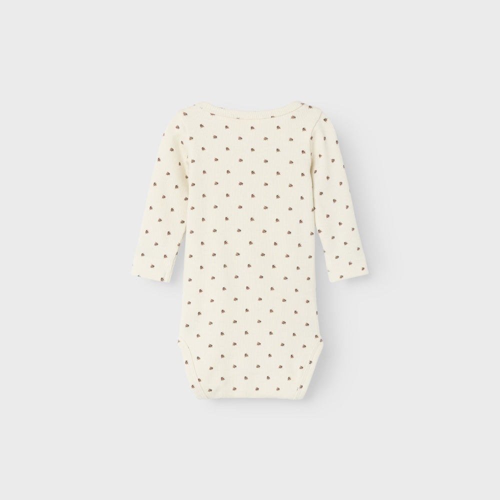 Introducing the delightful Lil'Atelier Turtledove Ladybug Lago Kim Slim Body Noos, specially designed for your little ones to enjoy supreme comfort wrapped in charming style. Crafted from high-quality, soft materials, this bodysuit ensures a gentle touch against your child's sensitive skin. It features an enchanting ladybug print on a turtledove background that adds a whimsical touch to your baby's wardrobe.