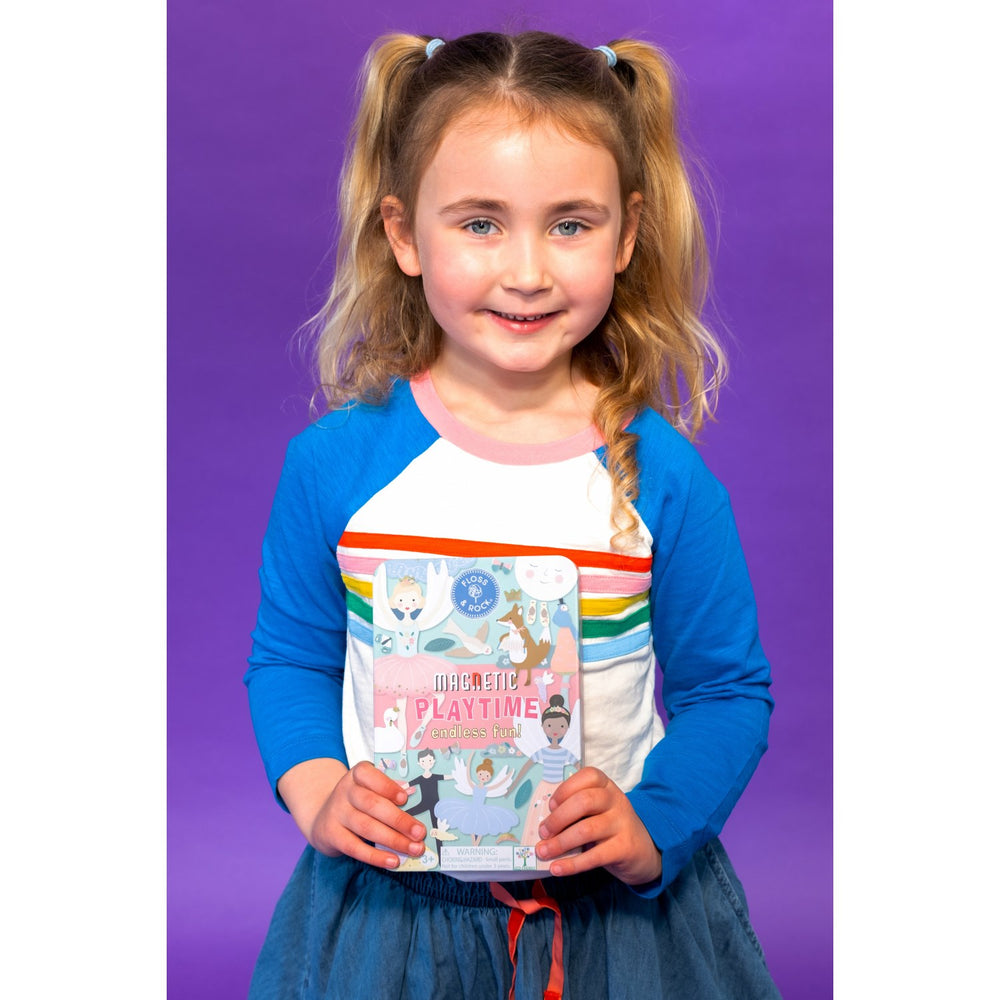Playtime fun in a handy magnetic tin! Contains 3 sheets of pop out magnets so you can have fun sticking over 50 bright, fun magnetic pieces to the 2 fun scenes on the inside of your tin and let your imagination run wild creating fabulous pictures with ballet dancers, swans, woodland creatures and much more. A perfect pick up gift, printed with soy inks and made using recycled materials. When you're finished playing, the magnetic tin safely stores all your pieces ready for next time.