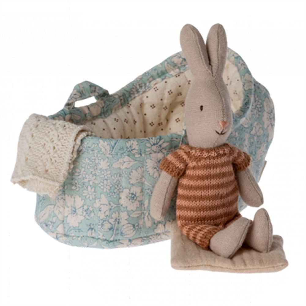 Discover the charm of the Maileg Kanin, a delightful micro-sized rag doll snugly nestled in its own brown carry cot. Perfect for children aged 3 and up, this toy blends safety with educational value, promoting nurturing skills and imaginative play. Lightweight and easy to carry, it ensures hassle-free storage and maintenance. Ideal for both engaging playtime and as a heartwarming collector’s item.