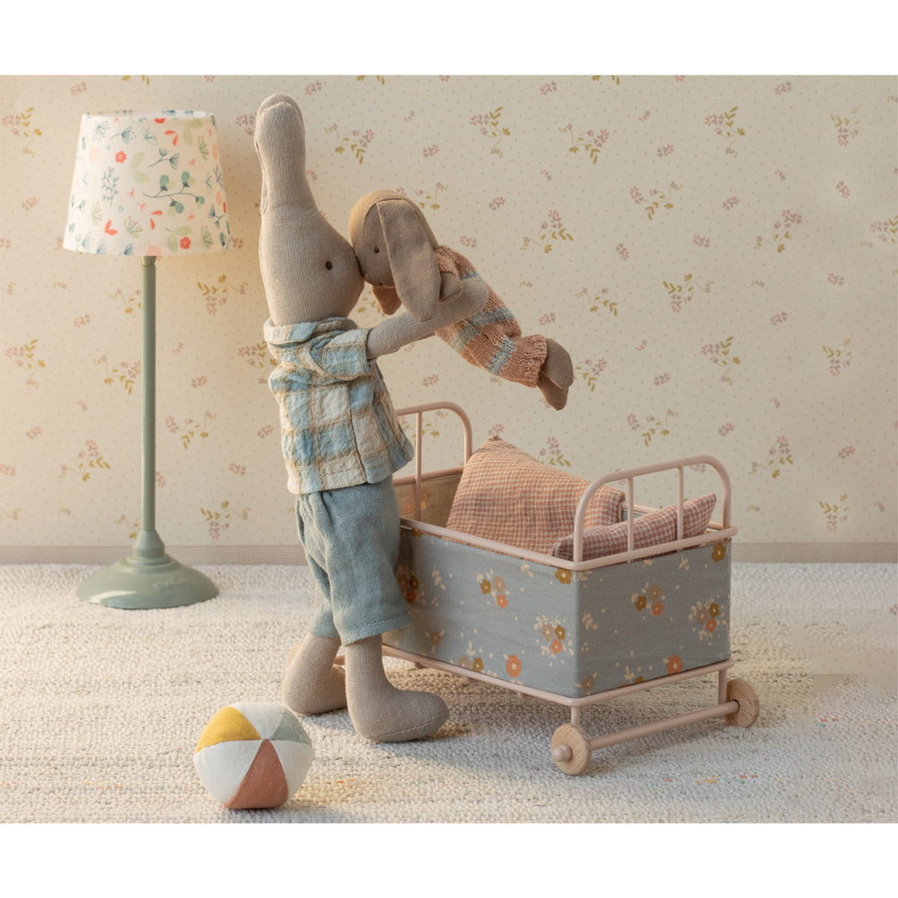 Introduce your child to the delightful Maileg Rabbit, dressed in a dusty rose knitted outfit, designed for endless storytelling and interactive play. This soft, fuzzy companion comes with built-in magnets in its hands for easy attachment to other Maileg Micro accessories, enhancing its educational value through imaginative role-play. Perfect for toddlers, this rabbit is not only engaging but also safe and easy to store within the 'House of Miniature' dollhouse, ensuring both fun and tidiness in your little one's play area.