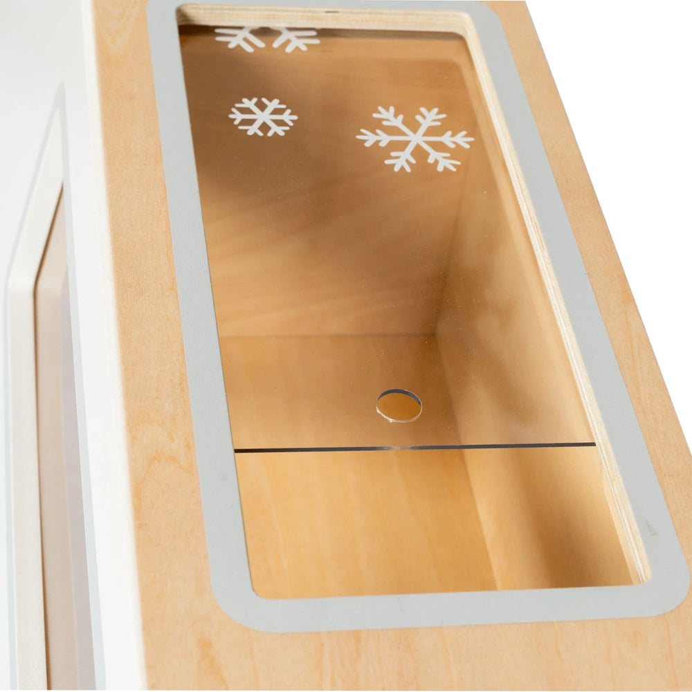 Crafted from durable, high-quality wood, this play kitchen is built to withstand the rigors of active play, ensuring longevity and continued enjoyment. The transparent sliding door not only enhances the realistic feel but also makes it easier for kids to interact and engage with their imaginative scenarios.
