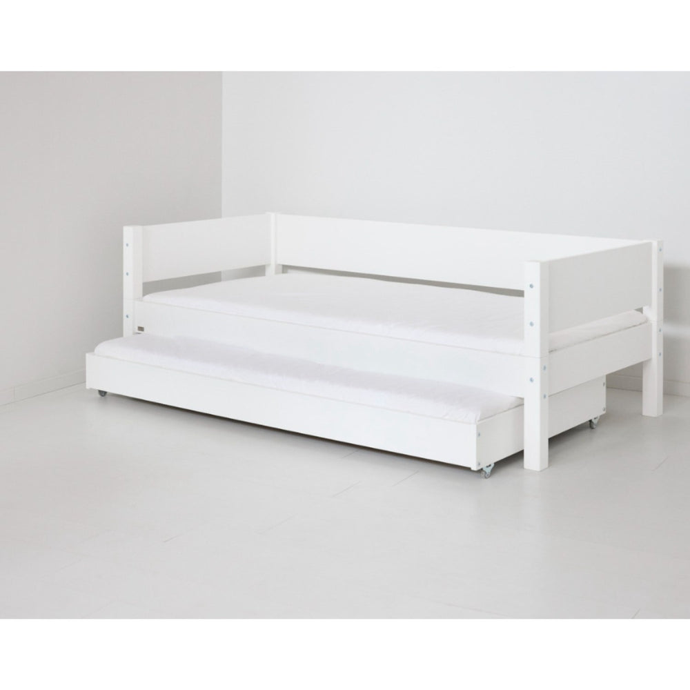 Introduce a fairy tale charm to your children's room with the Manis-h Snow White Liv Børneseng, ideally crafted to ensure safety and comfort. This elegant single bed features a robust slatted base and frame, accompanied by a convenient pull-out bed, perfect for sleepovers or shared sibling spaces. Its stylish design enhances room aesthetics while maximizing functionality and storage without compromising comfort. More than just a sleeping area, this bed offers a stimulating environment, encouraging a sense of independence and growth in youngsters.