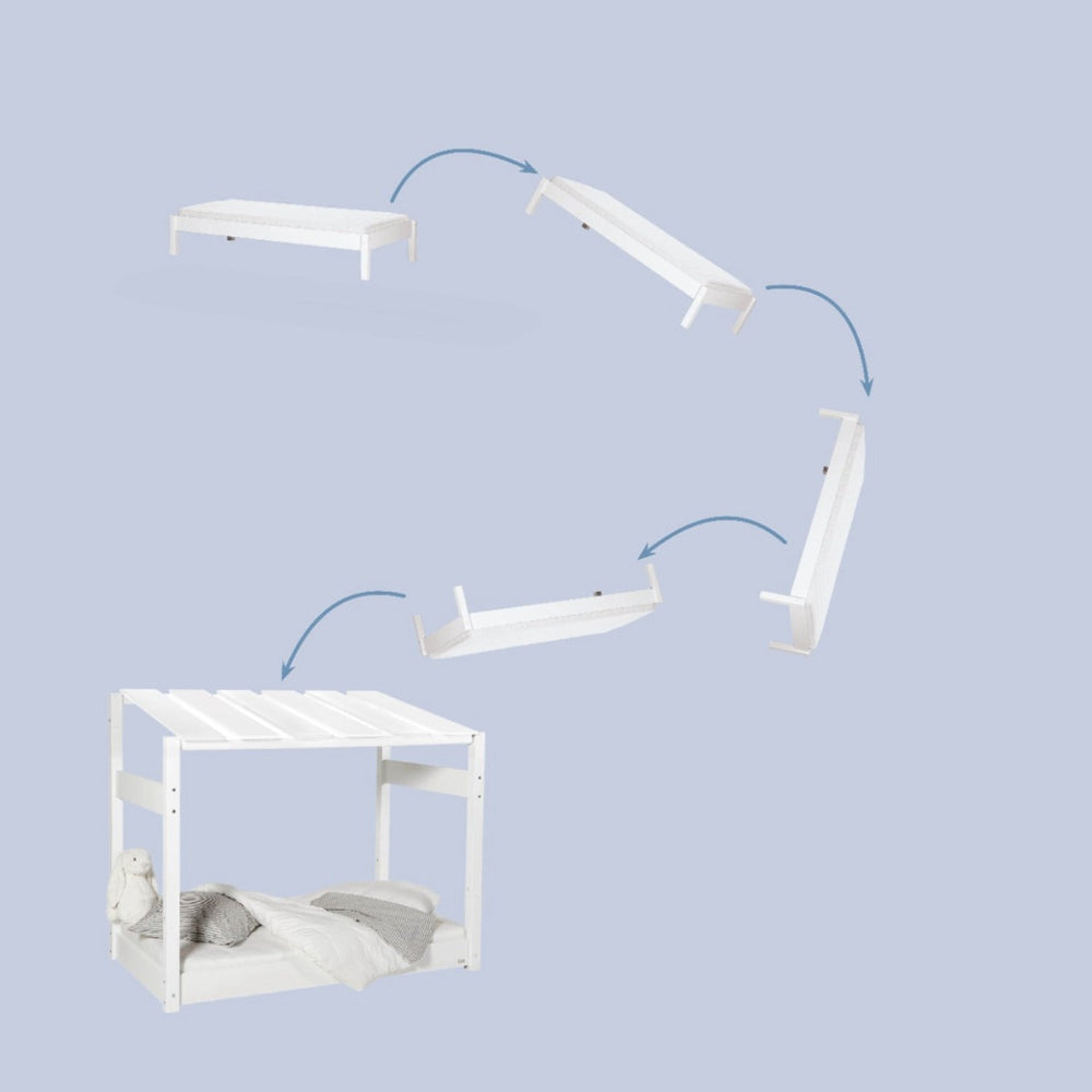 This starter bed is not just safe; it's designed to grow with your child. Add bed rails and backrests for extra security, enhancing comfort during those first nights. As your child's needs evolve, the bed expands into a high bed, bunk bed, or even a bed equipped with storage solutions.
