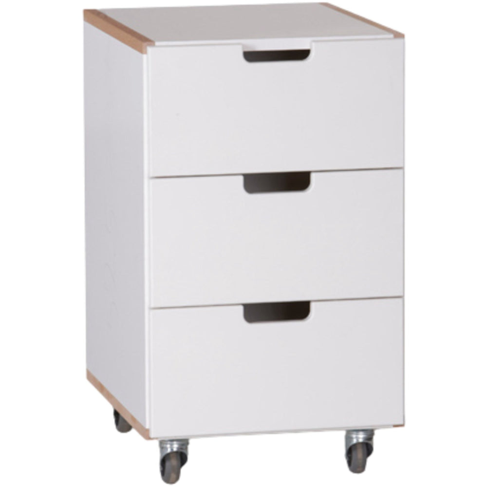Discover the Manis-h Snow White Rullekommode, the perfect addition to any child's room. Crafted with safety and functionality in mind, this roll chest of drawers features three spacious drawers that provide ample storage for everything from homework materials to arts and crafts supplies. The robust wheels allow for easy maneuverability, making it versatile enough to serve as a bedside table, a desk companion, or a corner storage unit.