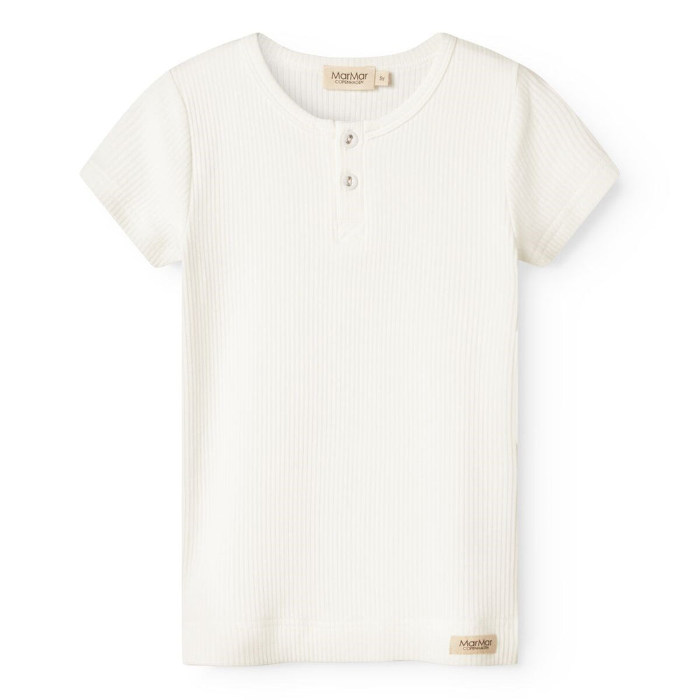 Dress your little one in the MarMar Modal Gentle White T-shirt, crafted from soft, breathable modal fabric for ultimate comfort. This charming short-sleeved tee features practical front buttons, making dressing easier. Its pristine white color and seamless design ensure versatility and style, perfect for both casual and special occasions. Easy to care for, this t-shirt promises both durability and effortless maintenance. Ideal for everyday wear, it offers a combination of comfort, simplicity, and style.