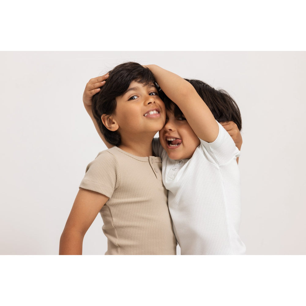 Let the little ones experience comfort and style with the MarMar Modal Mint Chalk T-Shirt. Designed with a convenient placket button closure, this short-sleeved t-shirt is made from a soft, stretchy ribbed knit with elastane. Perfect for play and everyday wear, the t-shirt ensures all-day comfort with its breathable material. Keeps both shape and color, even after many washes. In addition, it is made without harmful chemicals, certified Oeko-tex®. A true wardrobe favorite, updated in new colors every season since 2008!